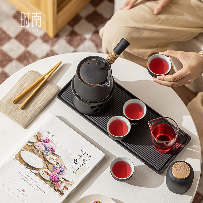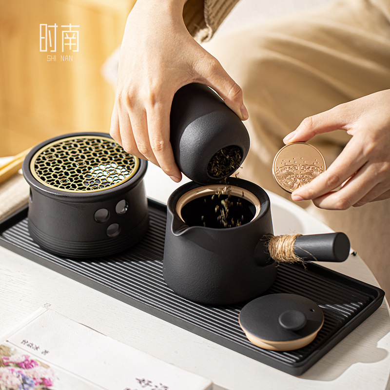 Zen Kung Fu Tea Set Household Small Side Handle Teapot Afternoon Tea Candle Warm Tea Stove Teapot Tea Cup