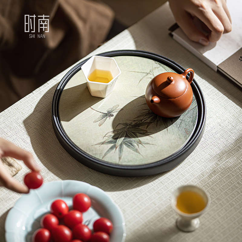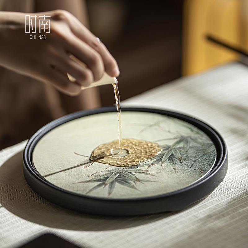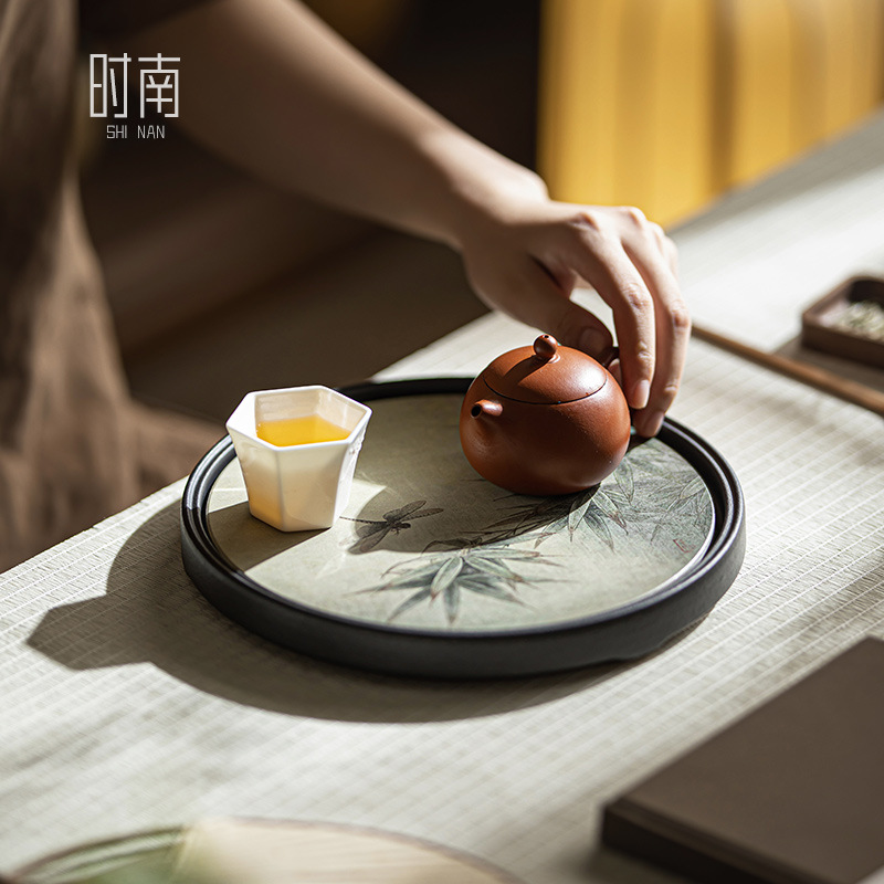 Chinese Style Round Absorbent Dry Bubble Table Creative Quick-drying Retro Pot With Coarse Pottery Household Ceramic Small Drain Tea Tray