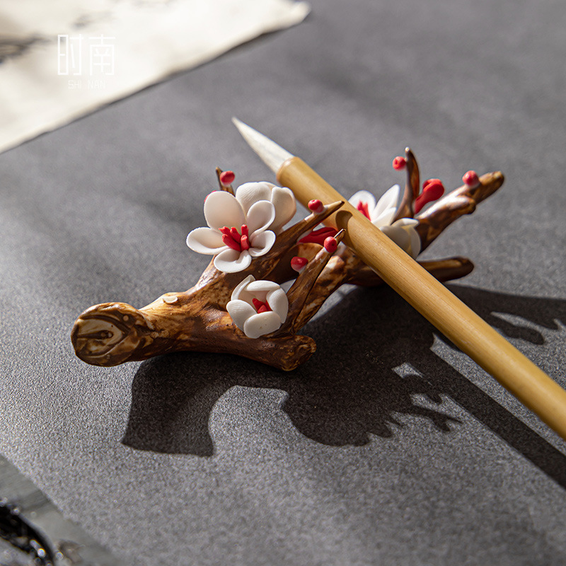 Purely Handmade Plum Blossom Incenseert,Ceramic Hair Pen Holder,Pen Holder,Four Treasures In The Study,Pinched Flowers,Tea Pet Ornaments,Tea Ceremony Accessories