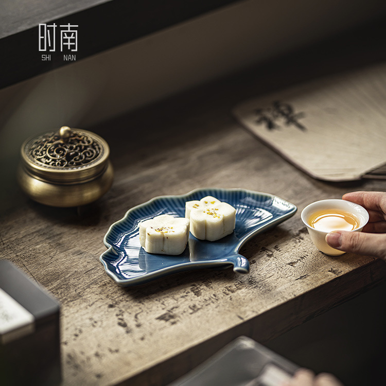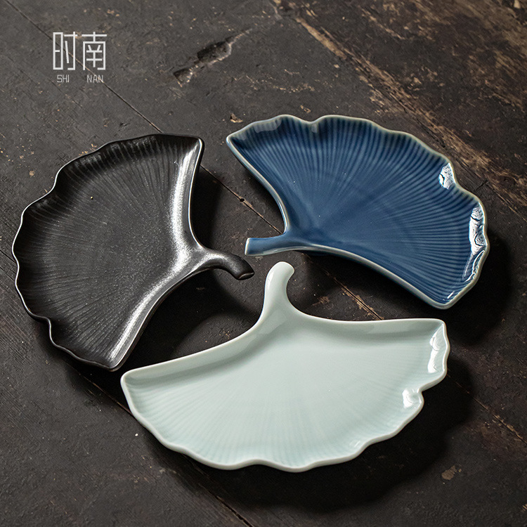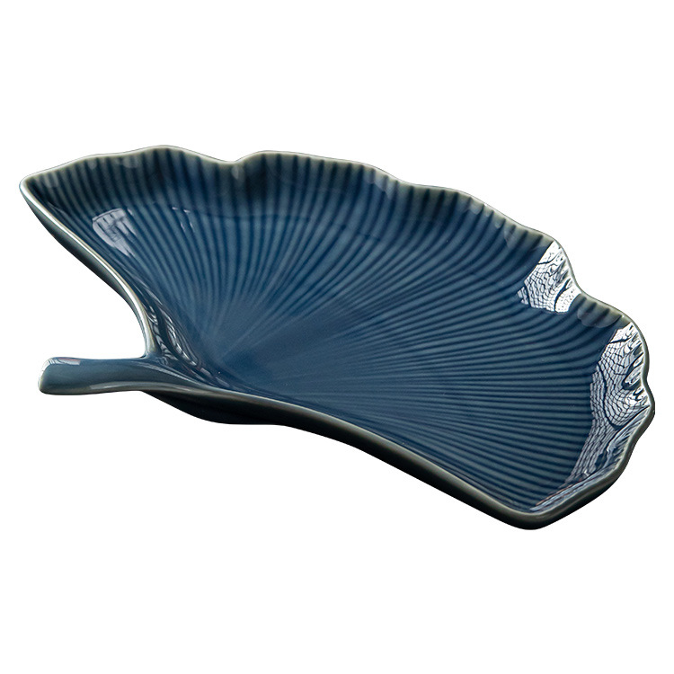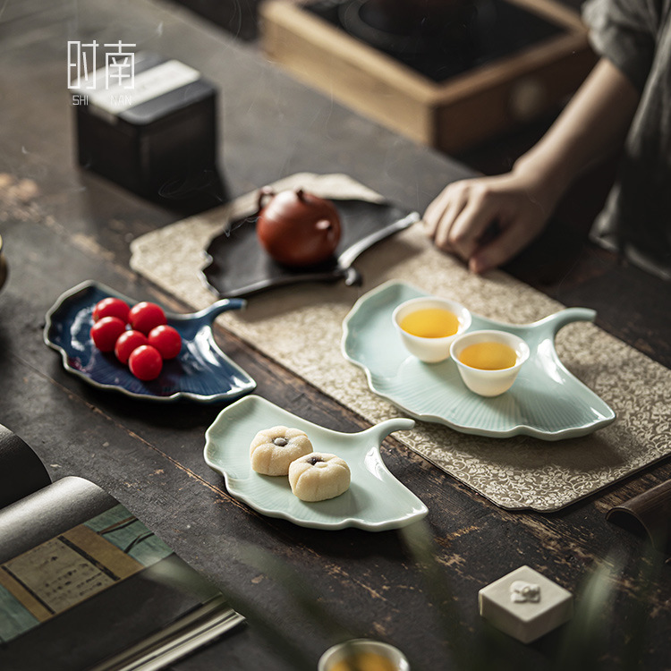Chinese Ceramic Ginkgo Leaf Fruit Plate Tea Set Accessories Dried Fruit Fruit Refreshment Plate Household Dish Plate Tableware Flat Plate Tray
