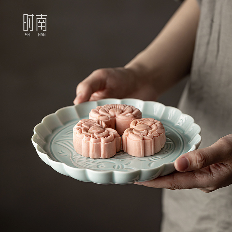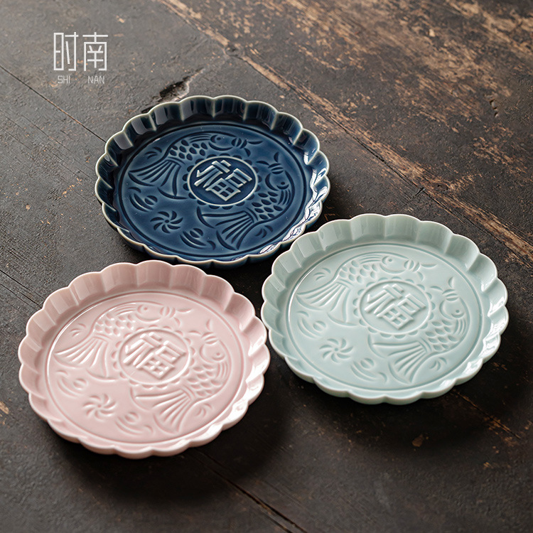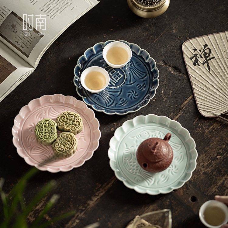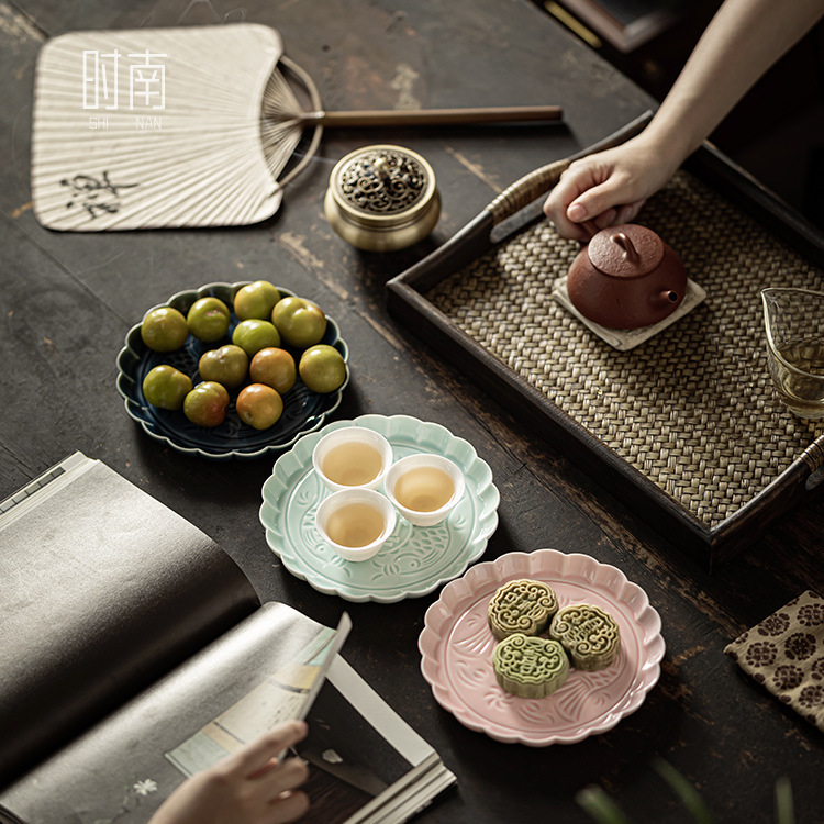 Ceramic Refreshment Plate Fruit Plate Chinese Retro Fruit Plate Dessert Plate Home Decorative Plate For Buddha Pastry Fruit Tray