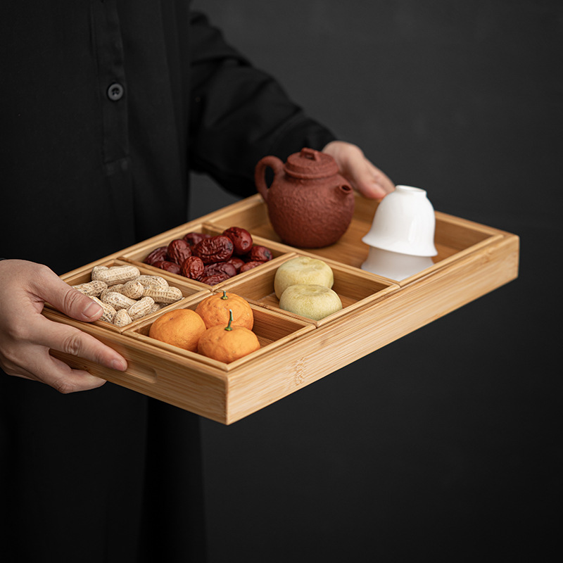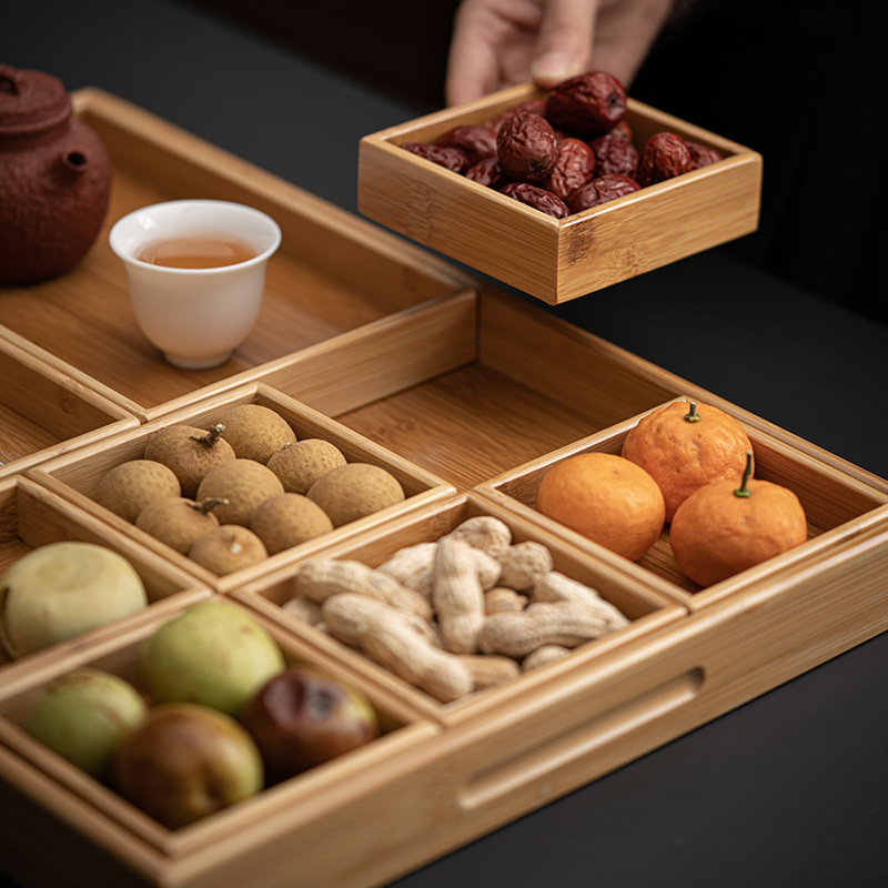 Creative Dried Fruit Box Living Room Bamboo Divided Fruit Plate Around The Stove For Cooking Tea Snacks Snack Nut Plate Storage Box Multi-grid