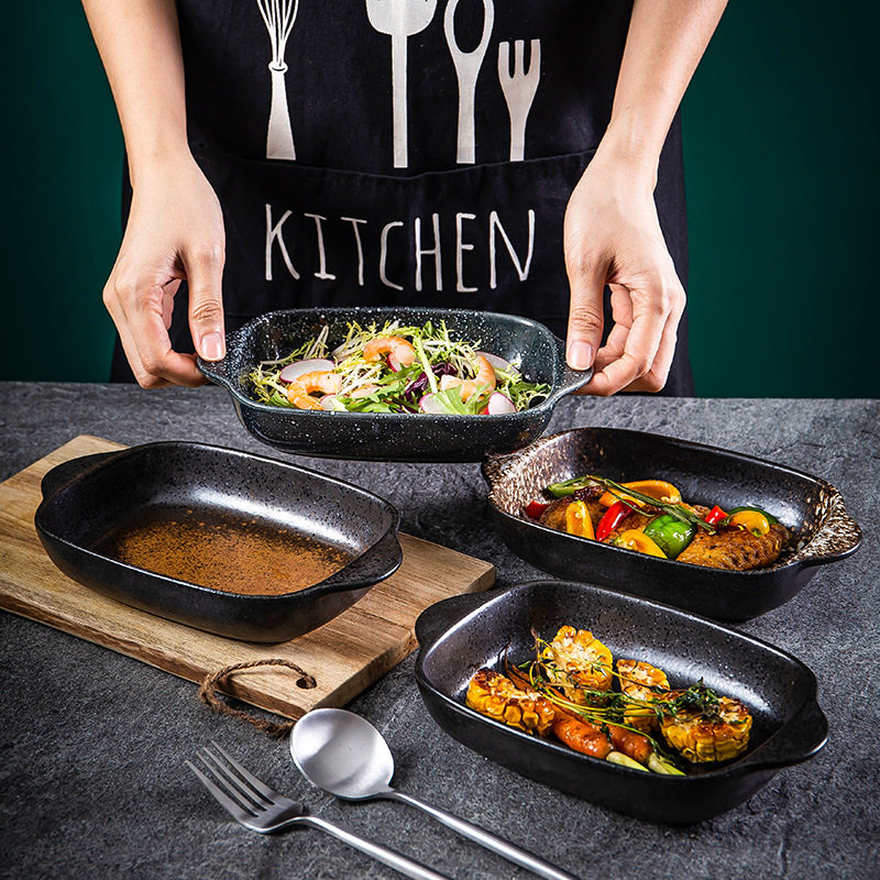 Japanese Ceramic Baking Pan,Baking Bowl,Baking Rice Plate,Tableware,Creative Dish Plate,Household Microwave Oven Bowl,Special