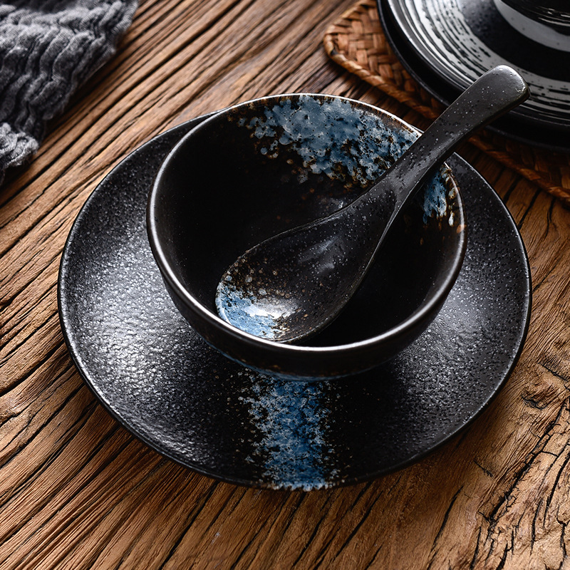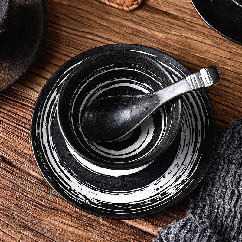 Japanese Cuisine Ceramic One-person Tableware Three-piece Set Of Dishes And Spoons Hot Pot Restaurant Hotel Restaurant Supplies