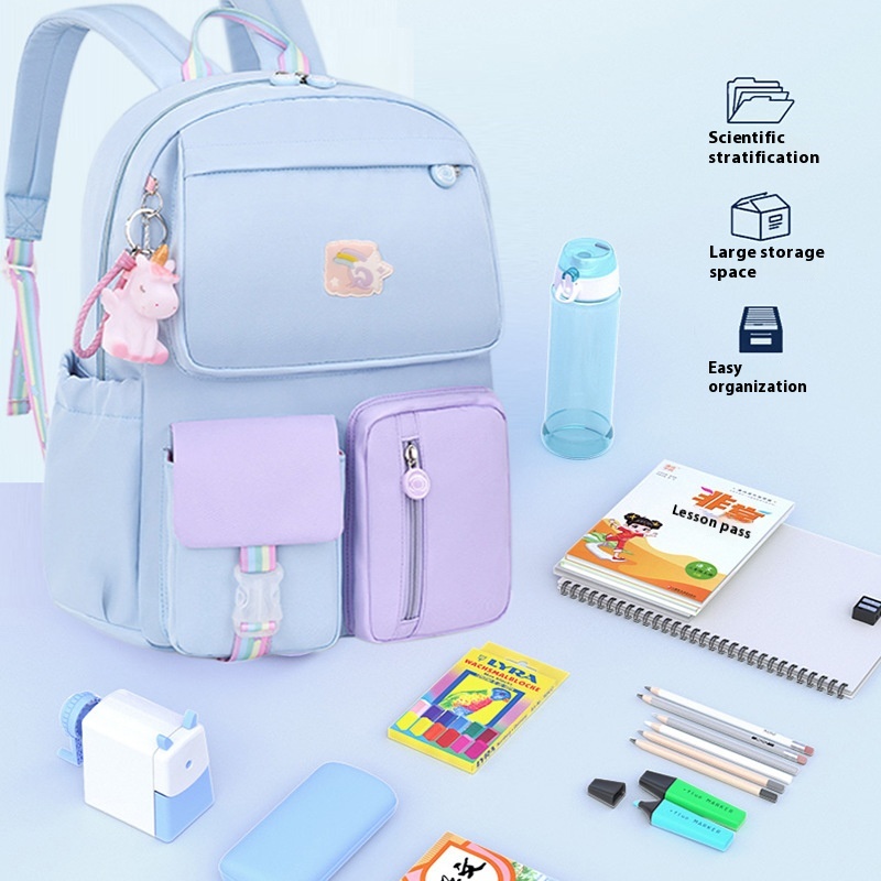 Elementary School Students'Schoolbags,Girls'Backpacks,Boys'Refrigerator Door Side-opening Macarons,Lightweight Models For Grades1-3-6
