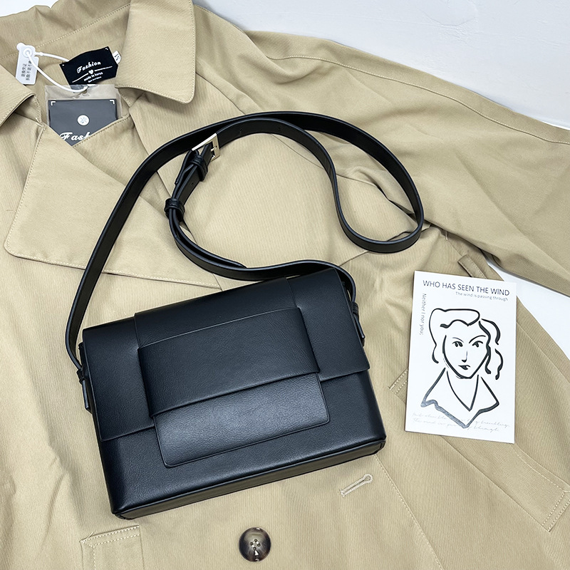 Korean Style Simple Soft Leather Woven Bag For Men And Women Niche Fashion Shoulder Bag Casual Versatile Crossbody Bag