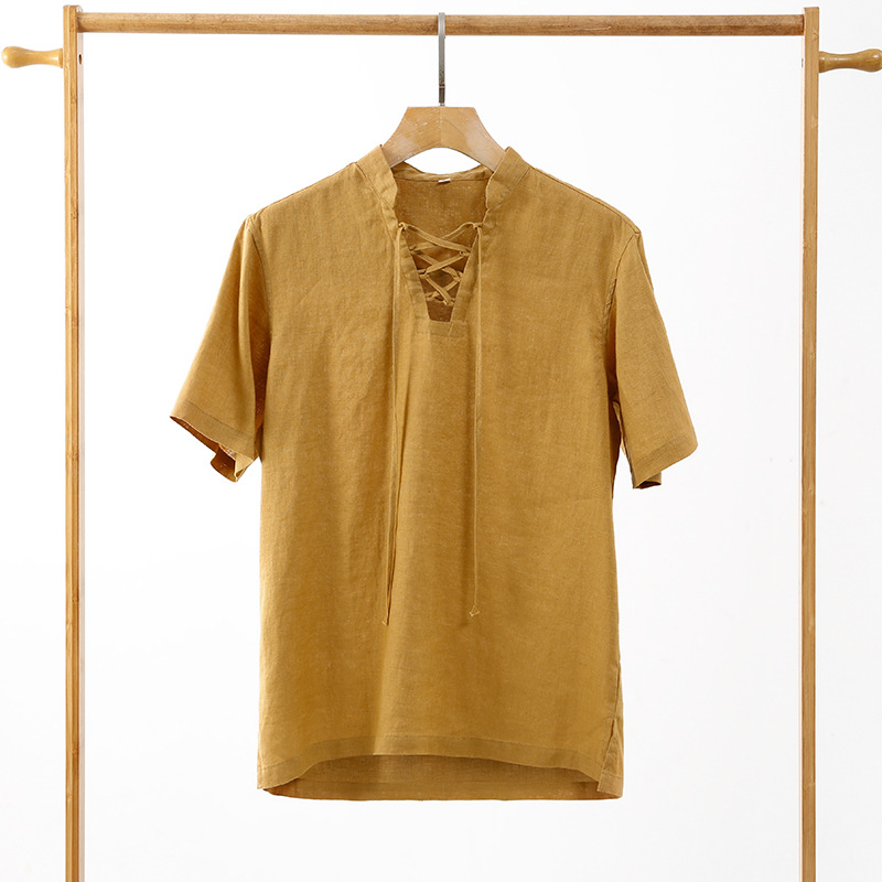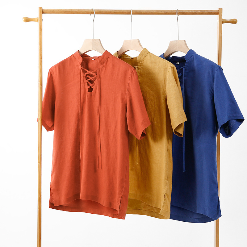 Summer Men's Linen T-Shirt Loose Breathable Linen Top Fashion Linen Men's Short Sleeve G008