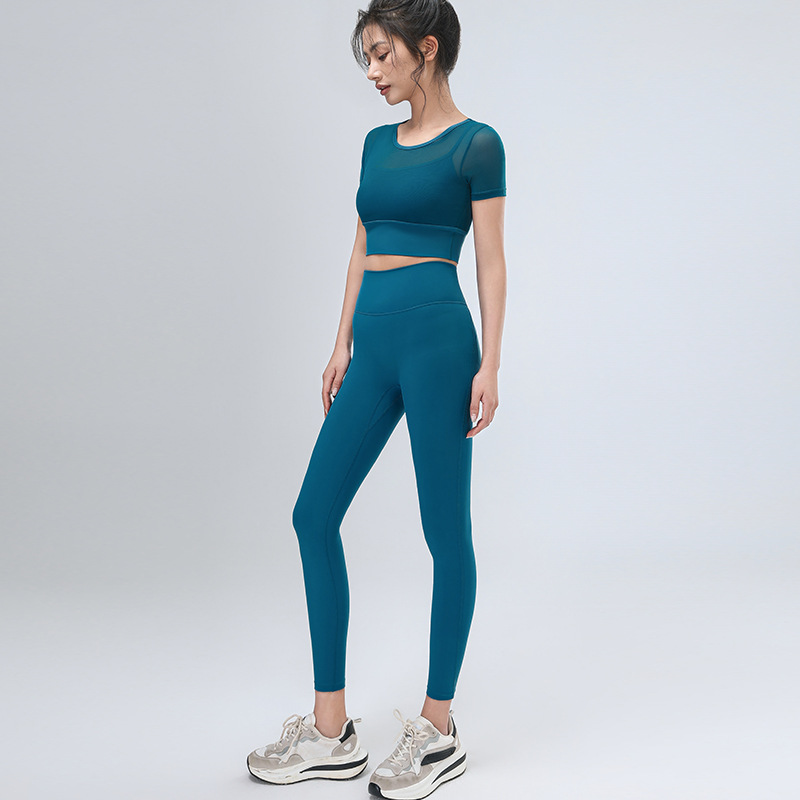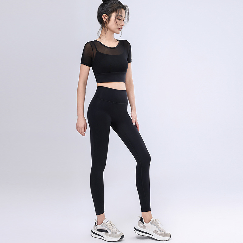 Fixed Cup Short Sleeve Yoga Suit Women's Slim Professional Pilates Gym Sportswear Summer