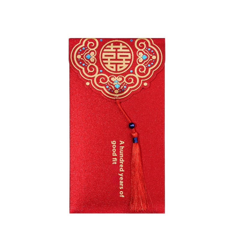 Suomei Home Couple Wedding Red Packet Chinese Style Bronzing Thousand Yuan Red Packet Personalized Happy Word Tassel Red Packet
