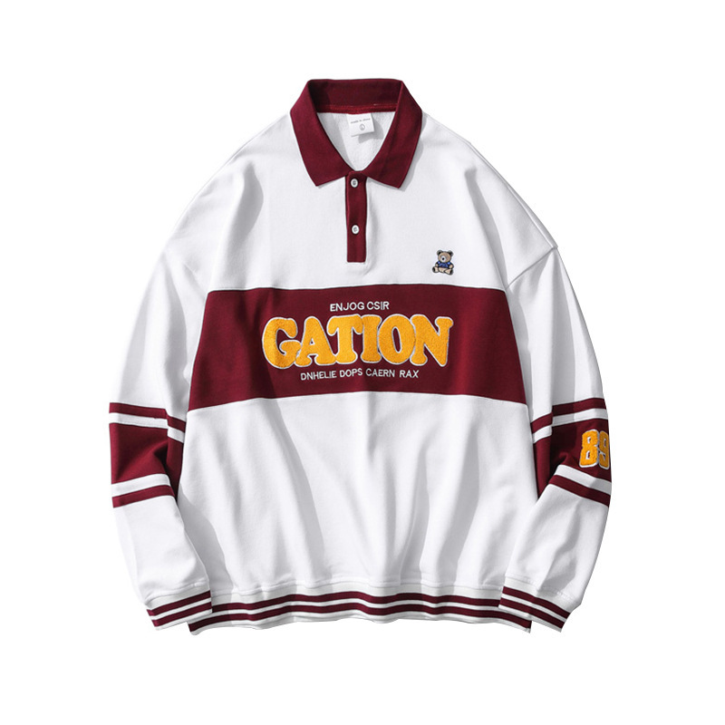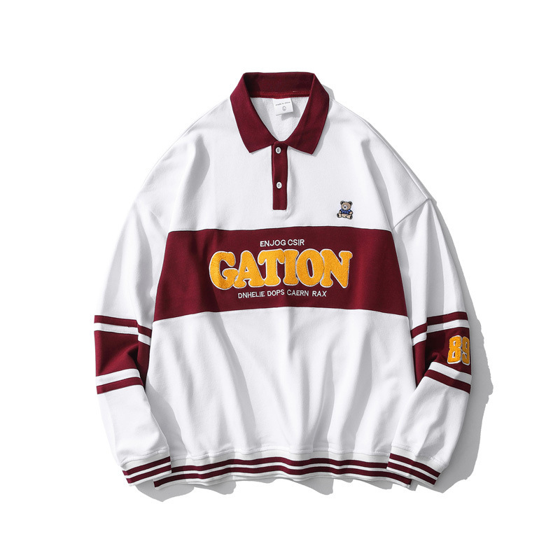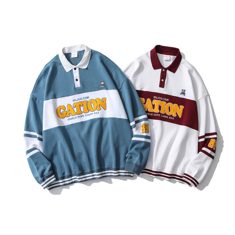 Couples Wear POLOCollar Sweatshirt Men And Women Autumn Lapel Stitching Loose Studenty Flocking Top