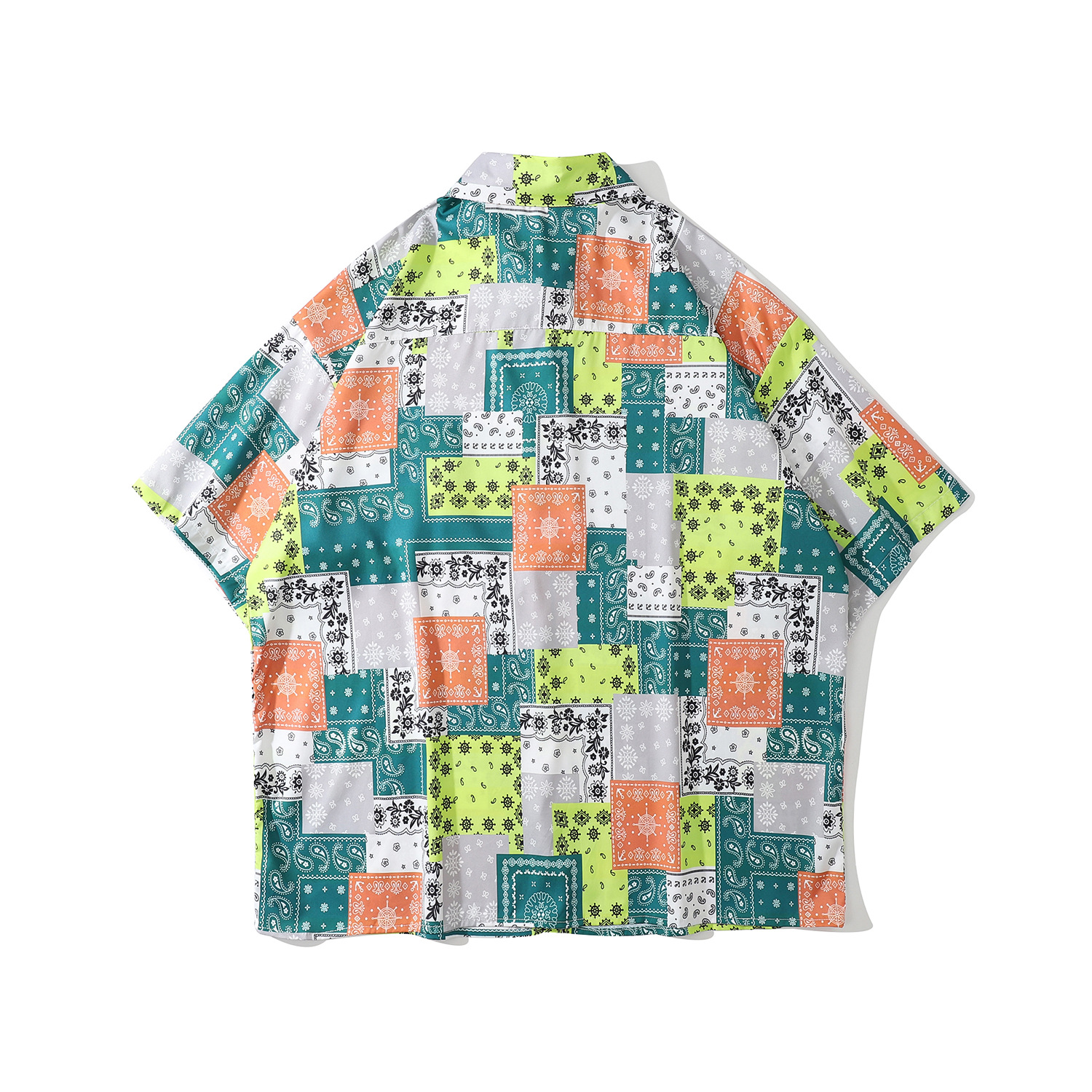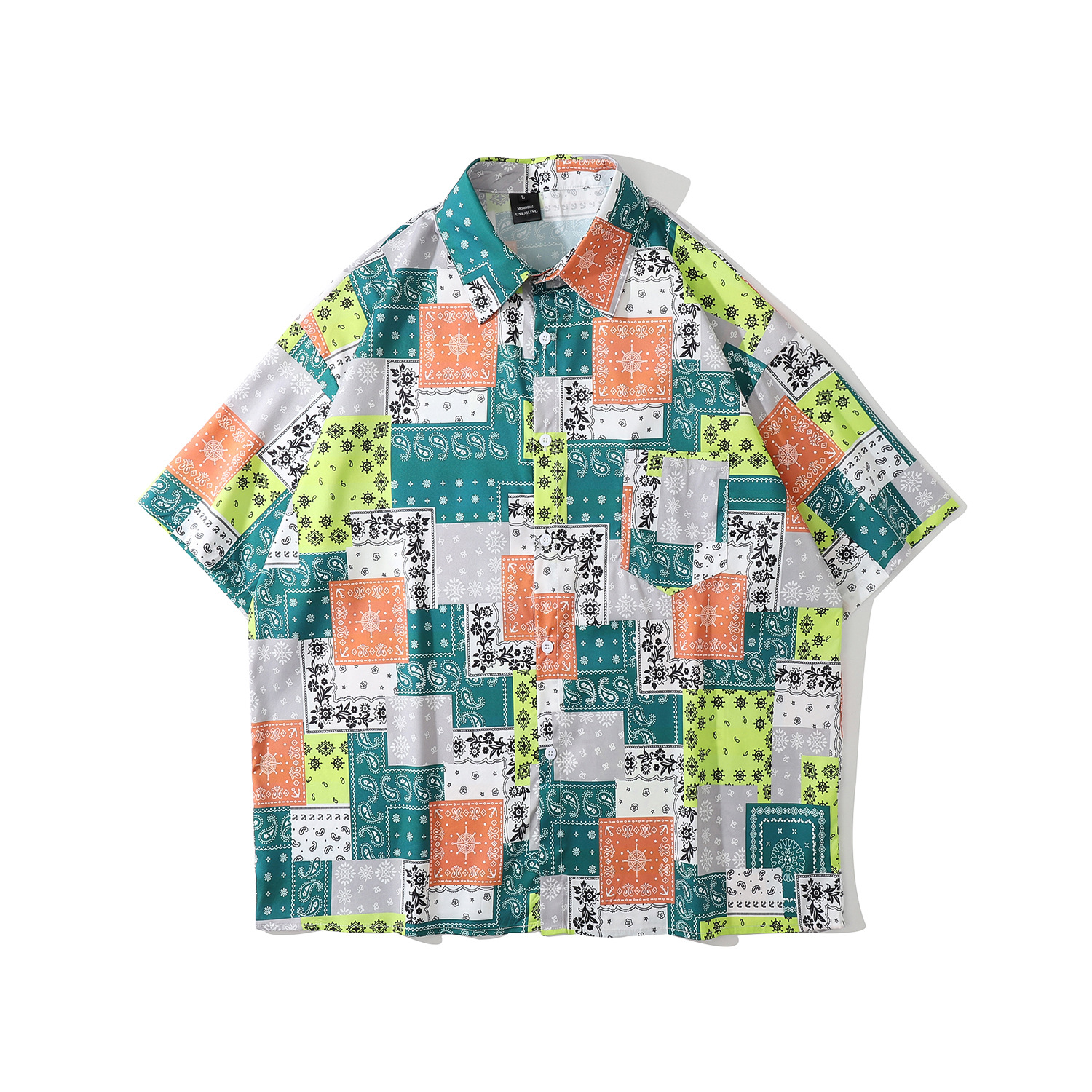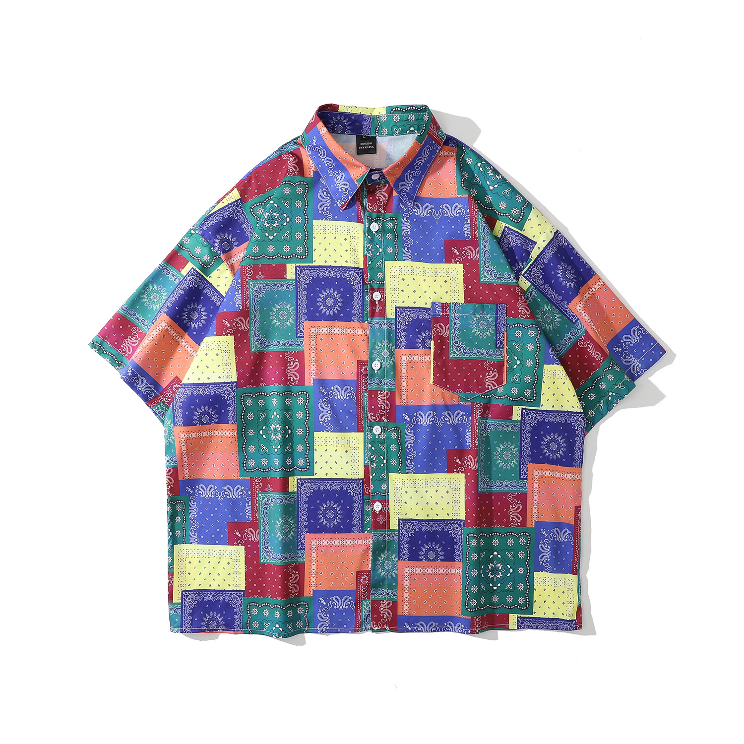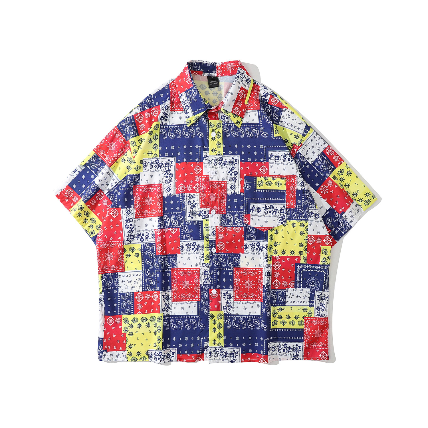 YWest Coast Cashew Flower Color Matching Short-sleeved Shirt For Men And Women American Street Hip-hop Overszie Half-sleeved Shirt