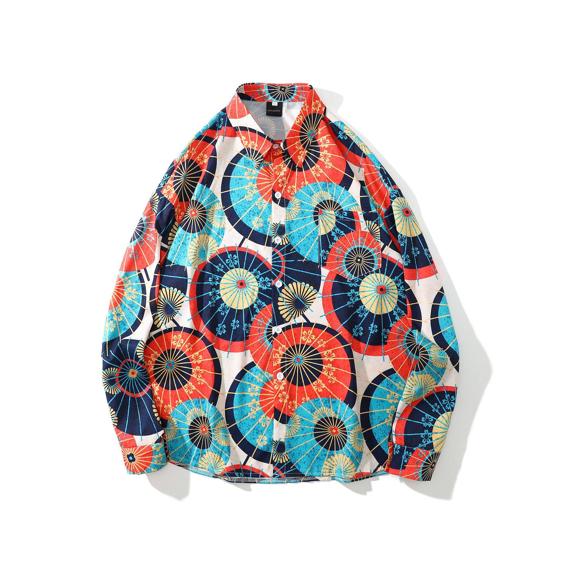 YBrand Japanese Harajuku Retro Floral Umbrella All-print Long-sleeved Shirt For Men Autumn Thin Coat Casual Loose Floral Shirt