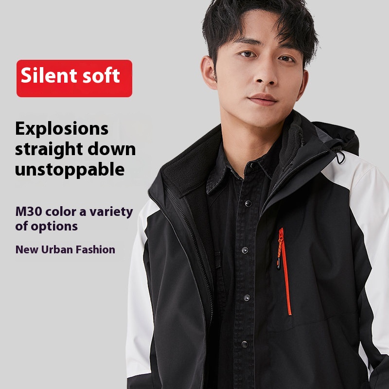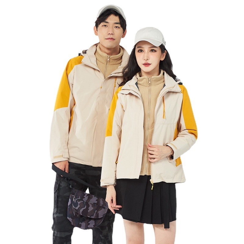 Winter Jacket With Printed For Men And Women, Three-in-one Detachable Velvet Thickened Two-piece Windproof Mountaineering Jacket