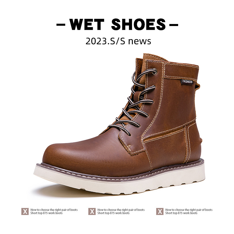 Big Yellow Boots Genuine Leather Winter Warm High Top Motorcycle Thick Bottom Martin Boots Men's Big Head Work Boots Plus Velvet Men's Leather Boots