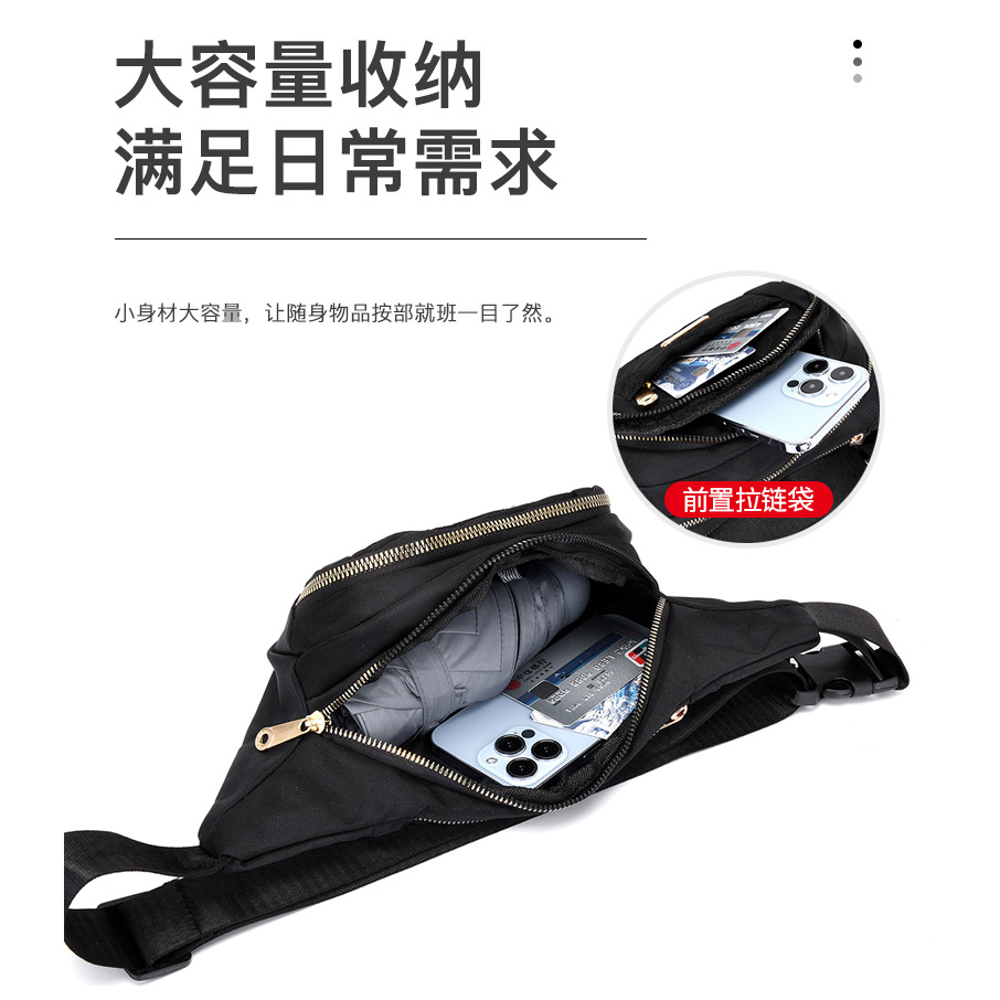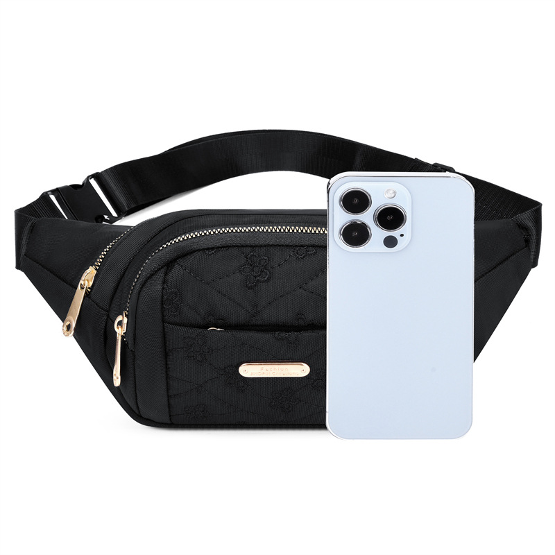 Women's Embroidered Solid Color Nylon Crossbody Bag Single Shoulder Outdoor Simple Running Bag Sports Multifunctional Waist Bag