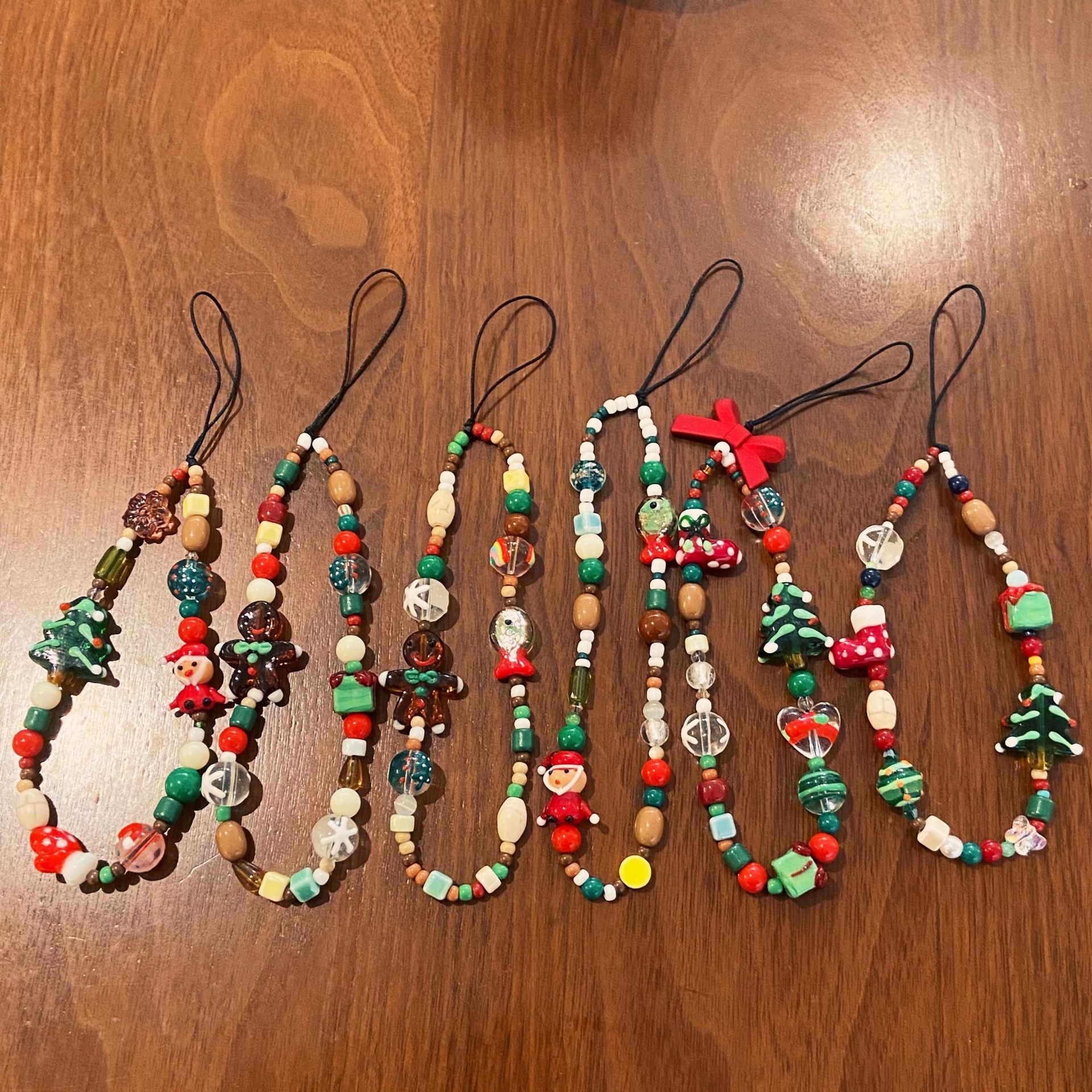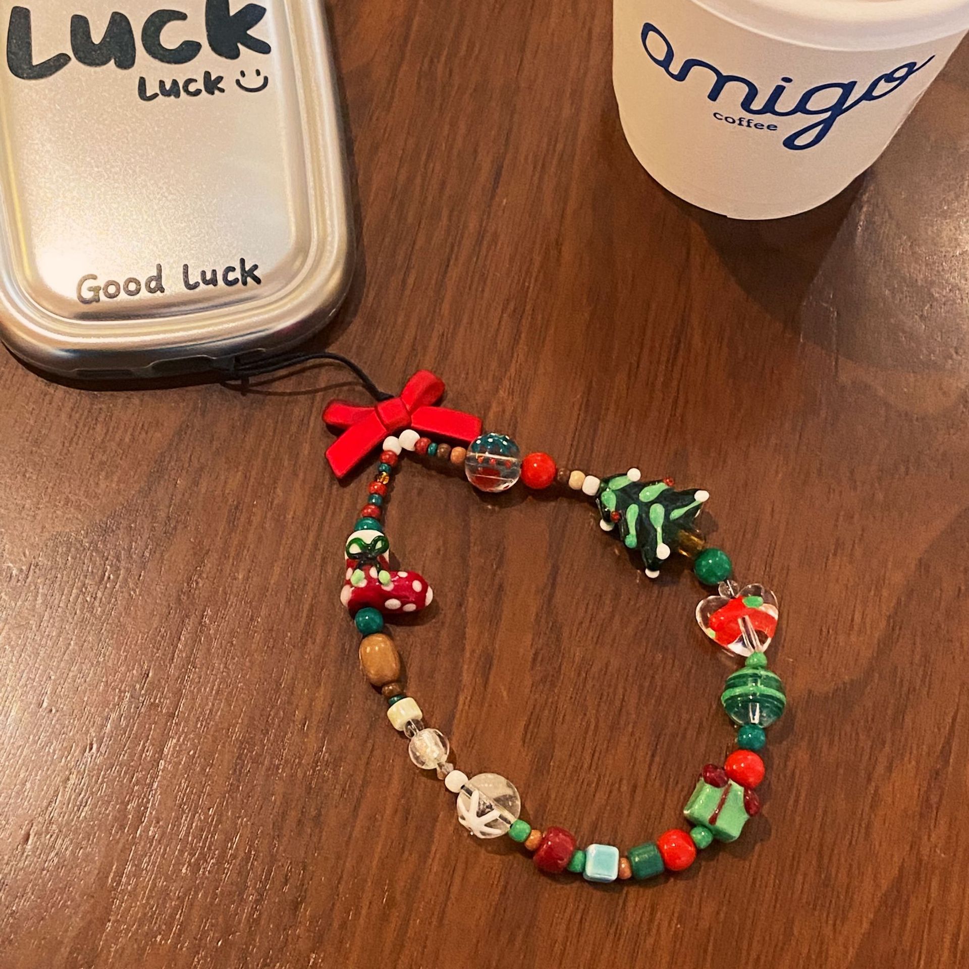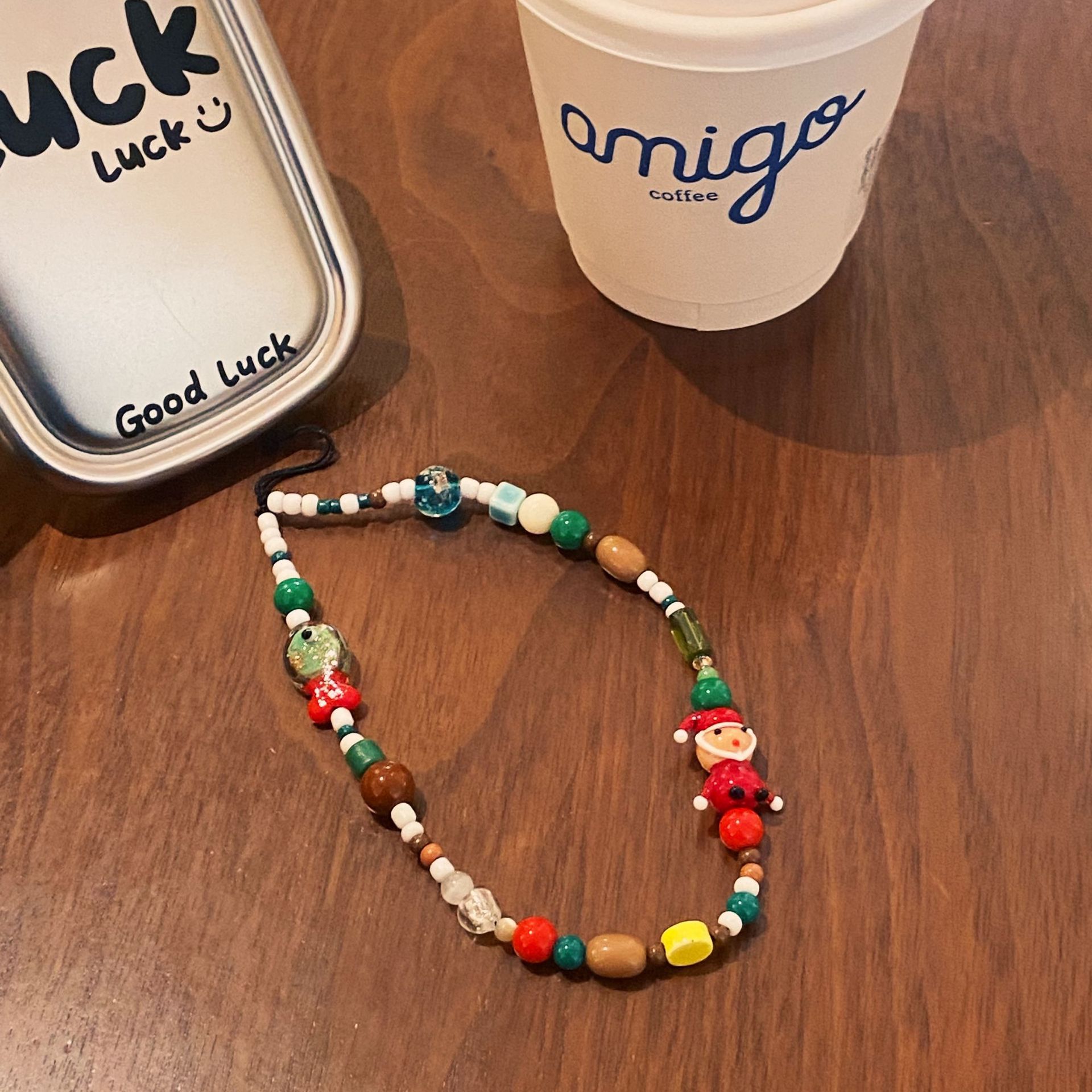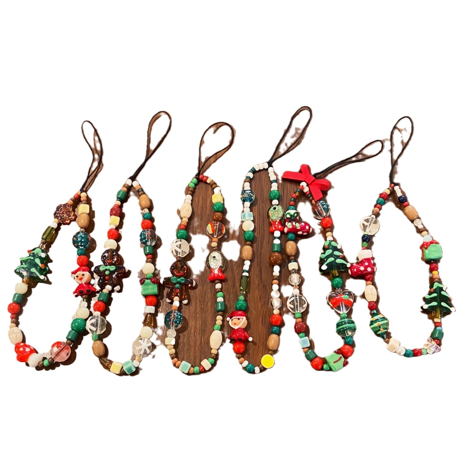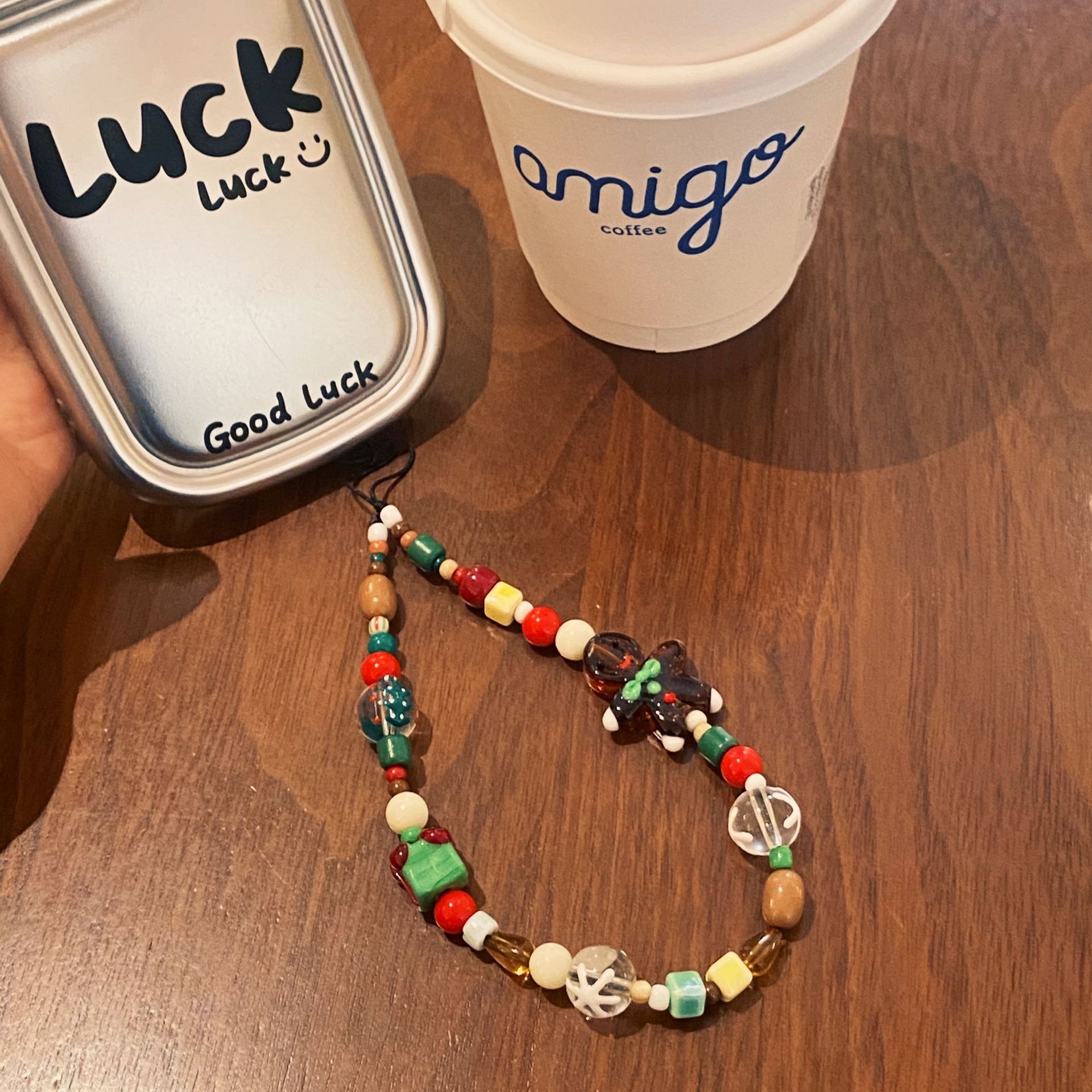 Christmas Gingerbread Man Ceramic Glass Beads Keychain Mobile Phone Chain Holiday Cute Bag Pendant Year’s Ornament