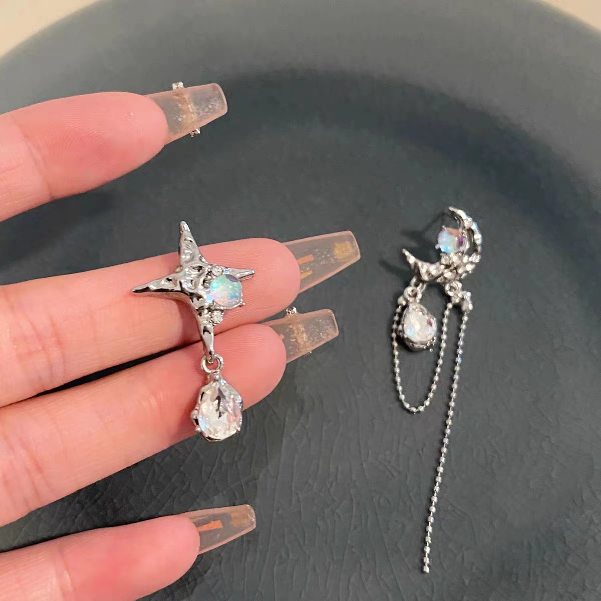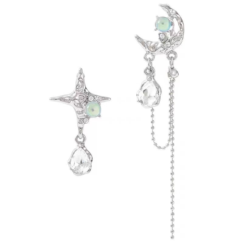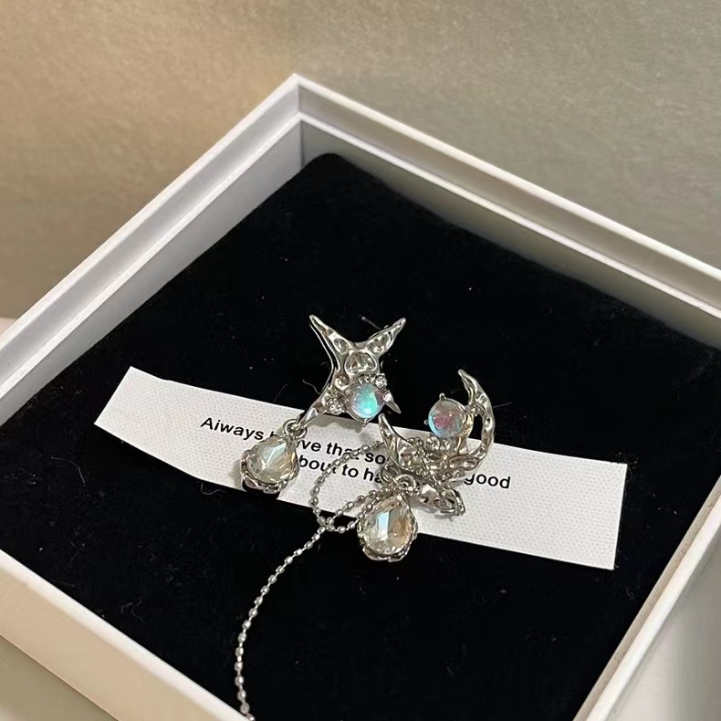 Moon Star Asymmetric Earrings Women's Fashion Light Luxury Personality Temperament High-end Earrings Niche Versatile Earrings