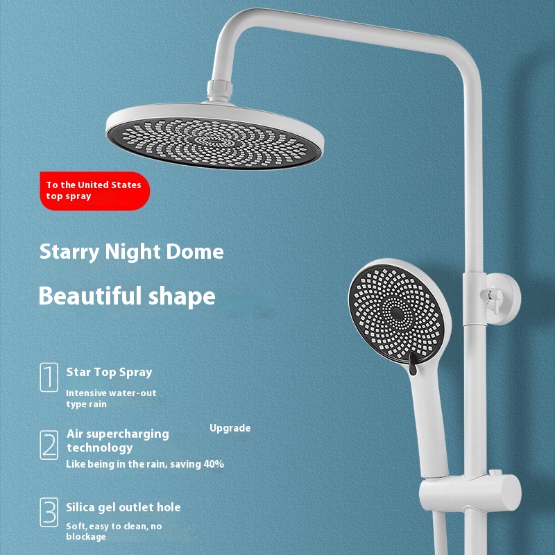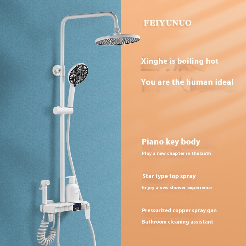 White Piano Button Digital Display Thermostatic Shower Head Set Booster Shower Head Household All-copper Water Mixing Valve