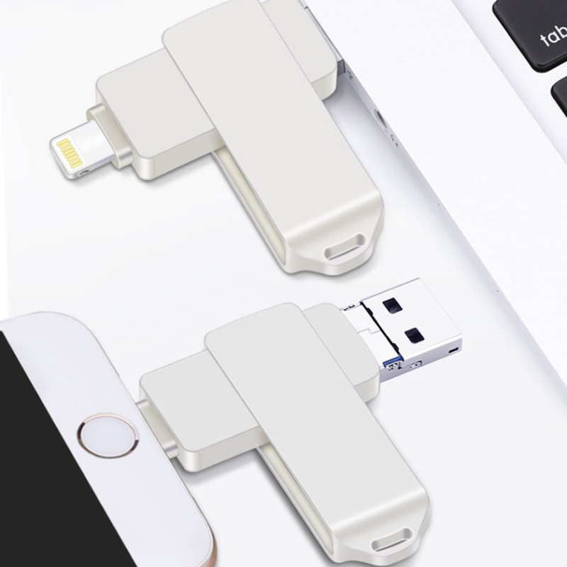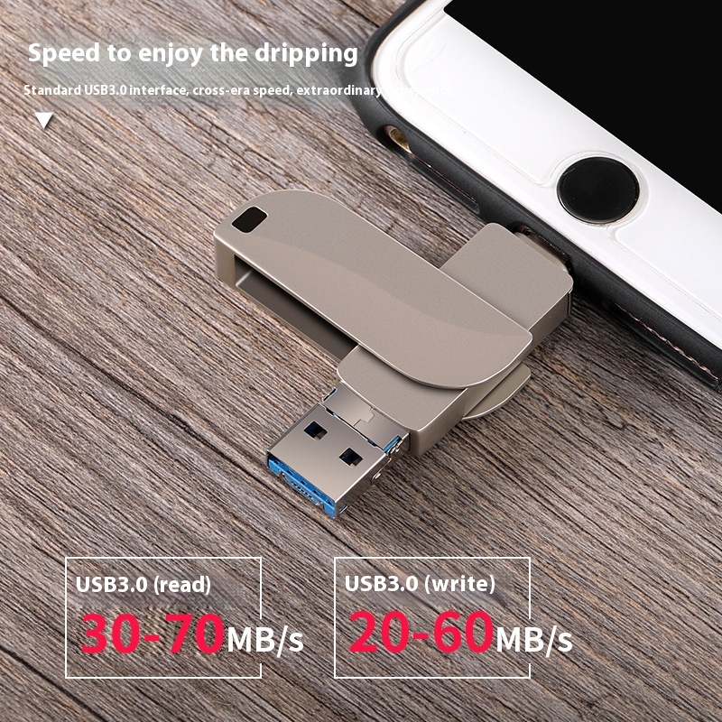 Suitable For Apple And Android Computers Three-in-one Zinc Alloy UDisk High-speed Rotating Mobile Phone UDisk Memory Expansion Container
