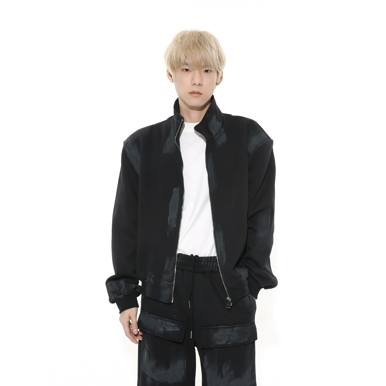 MTLCLOTHESMen's Clothing|Spring Lacquered Small Stand-up Collar Zipper Sweatshirt Casual Sports Suity