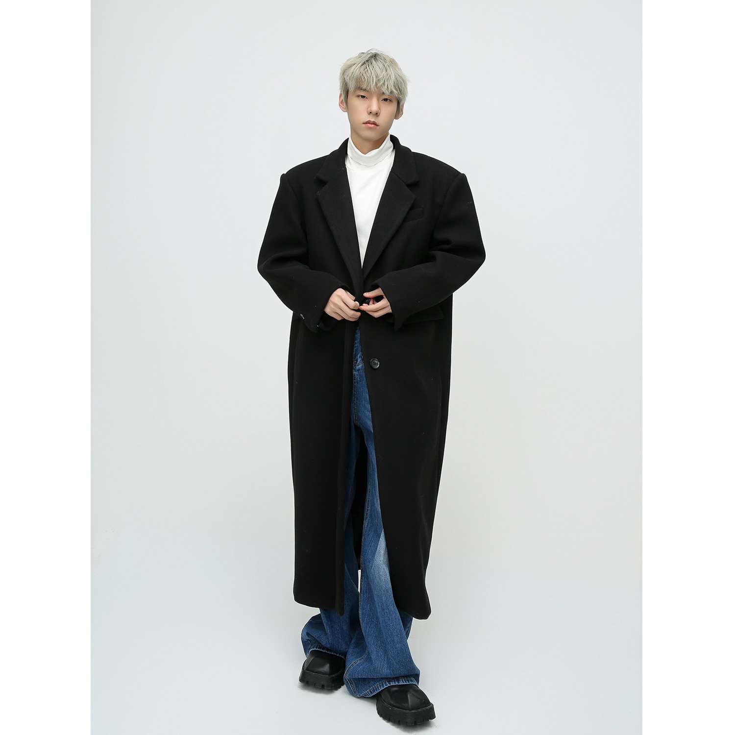 MTLCLOTHESMen's Clothing|Autumn And Winter Korean Style Loose Simple Shoulder Pad Long Coat For Men