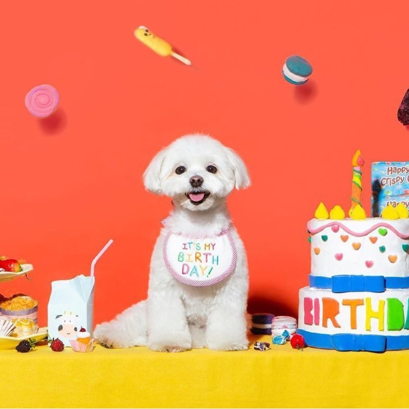 Korean Happy Birthday Embroidered Dog Bib Pet Cat Dog Bib Saliva Towel