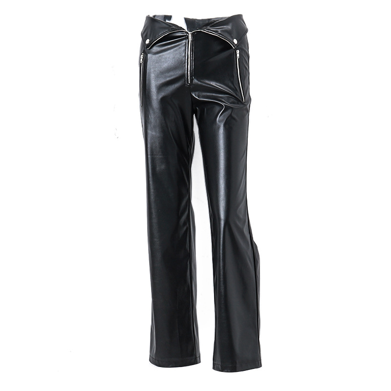 Autumn European And American Popular Women's High-waisted Straight-leg Loose Wide-leg Casual Pants And Leather Pants