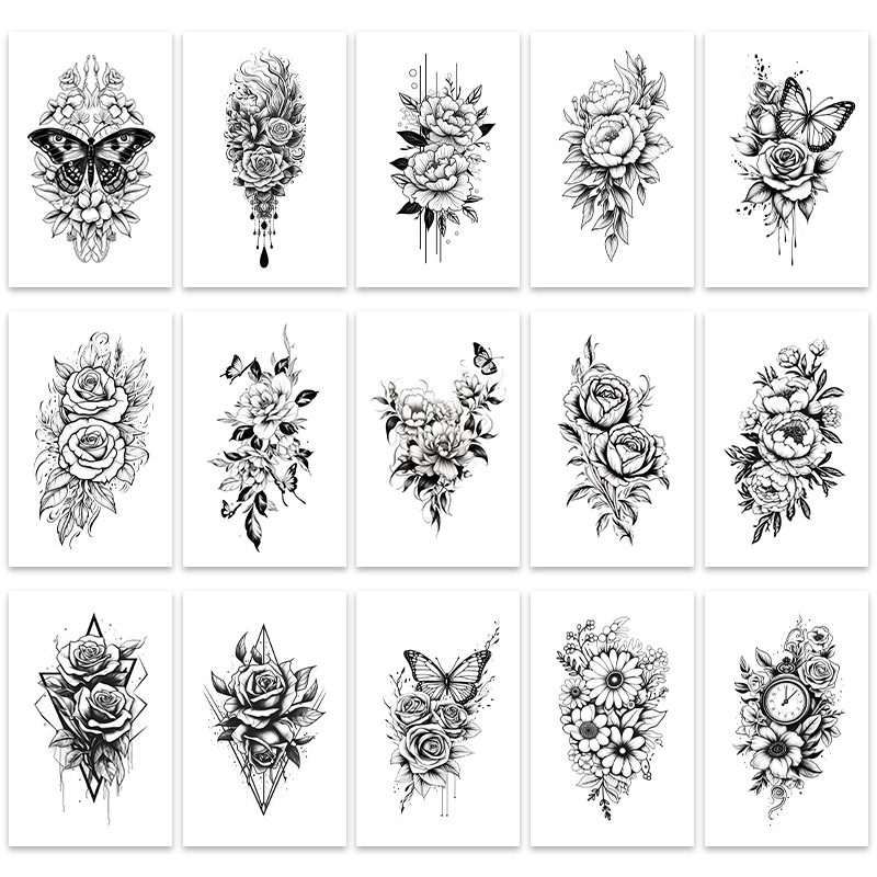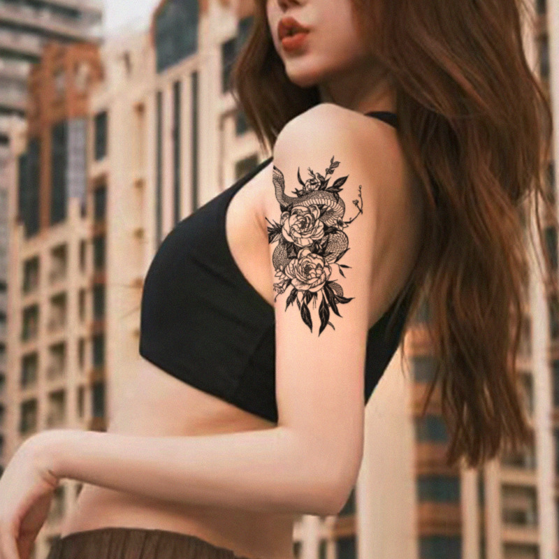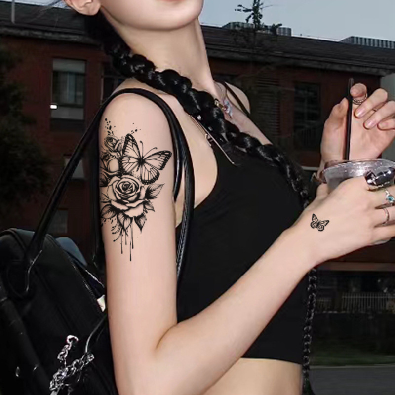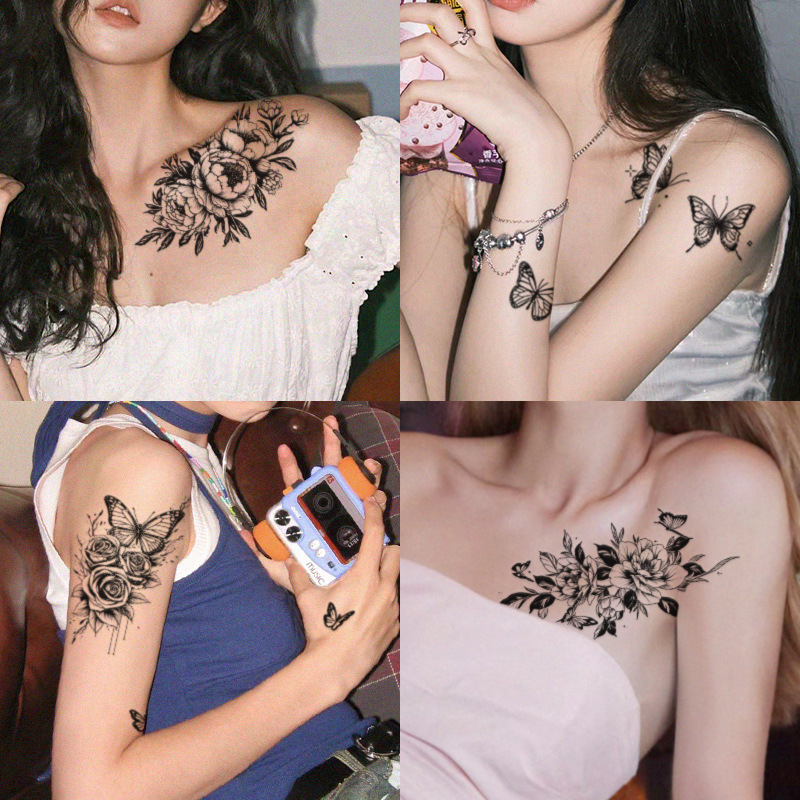 Sweet And Cool Hot Girl Colorful Rose Plain Flower Tattoo Stickers Dreamy Little Fresh Fairy Cute Collarbone Chest Goddess Sexy