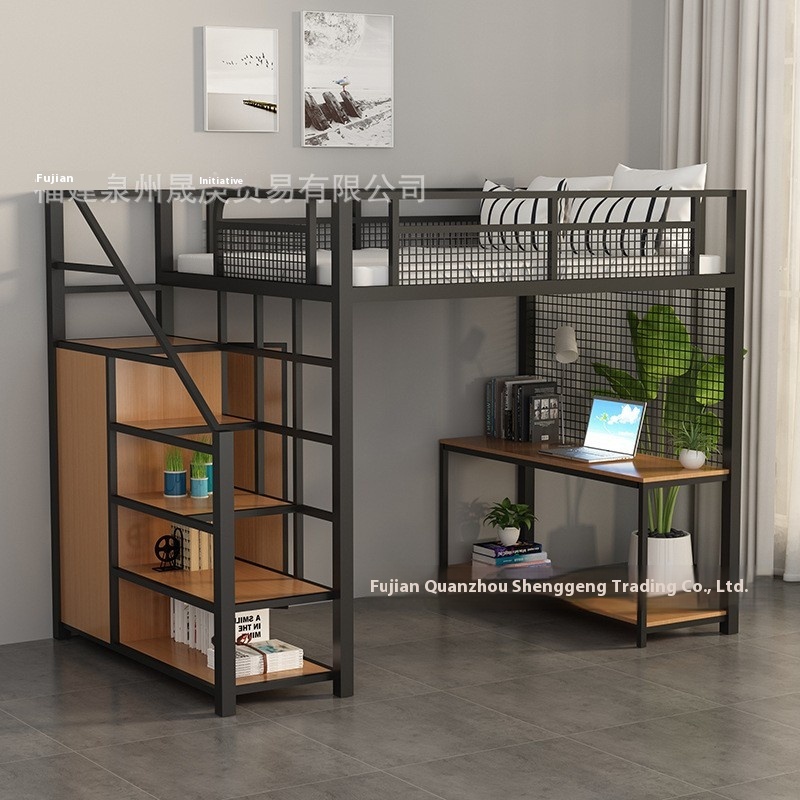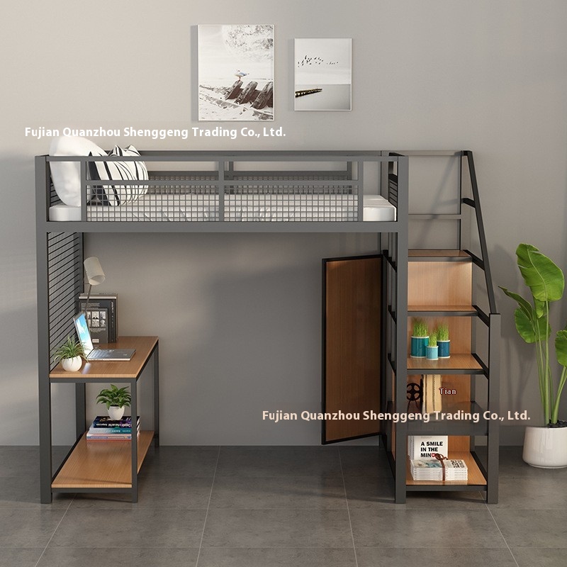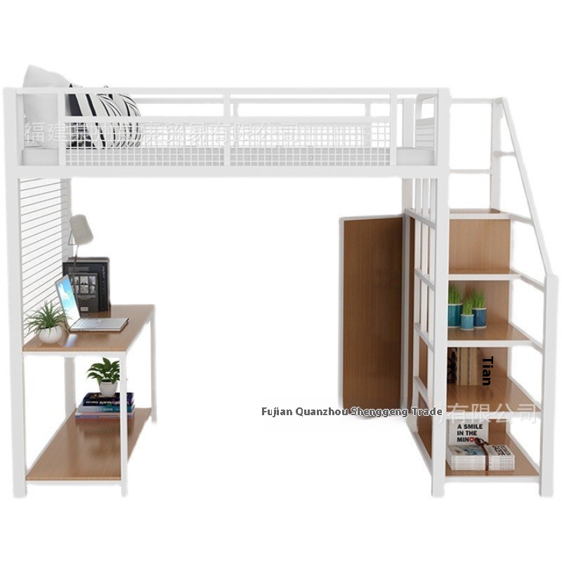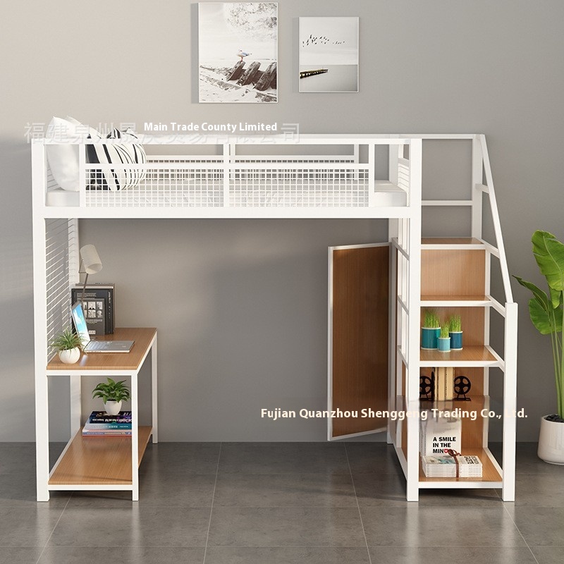 Nordic Iron Loft Bed With Wardrobe, Simple Upper And Lower Bed, Space-saving Home Single Iron Bed With Bookshelf Design