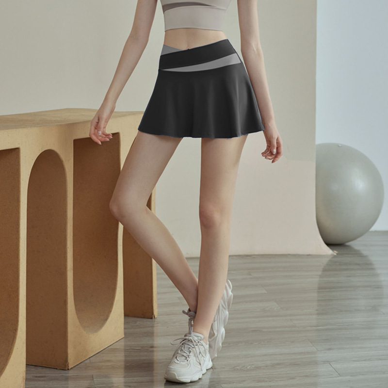 Style Color-blocked Butt-covering Fake Two-piece Running Fitness Dance Yoga Training Quick-drying Sports Skirt