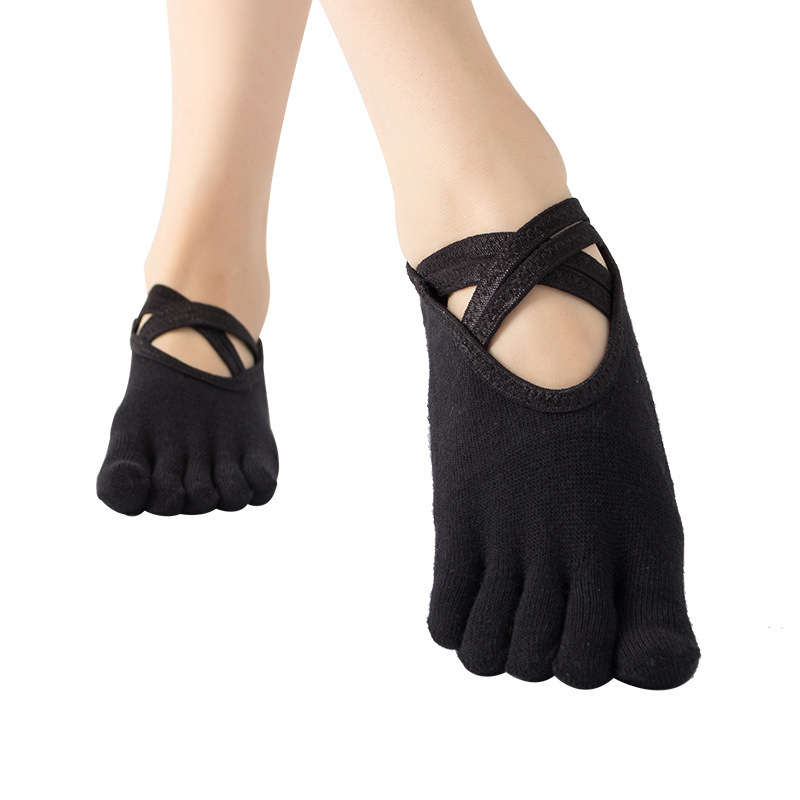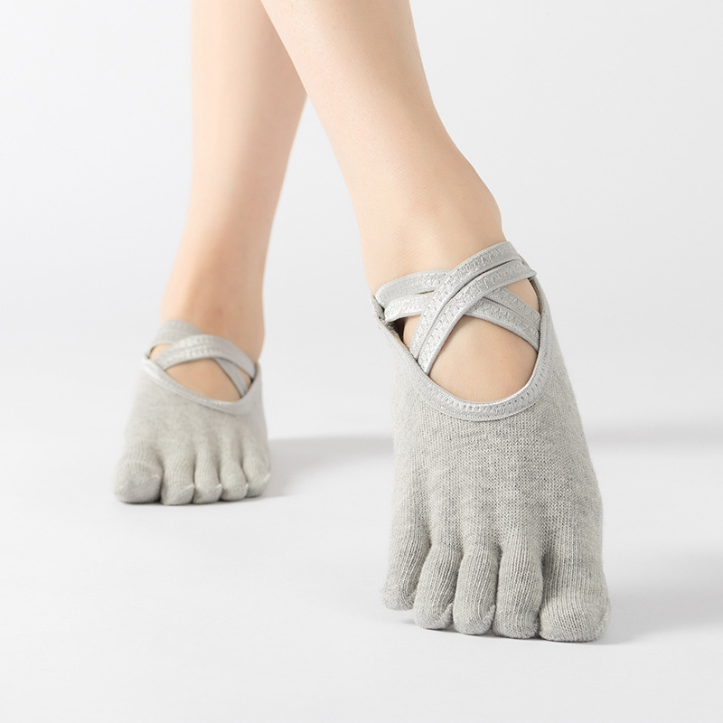 Cross-strap Five-finger Yoga Socks Leaking Back Yoga Socks Lace-up Dance Split-toe Socks