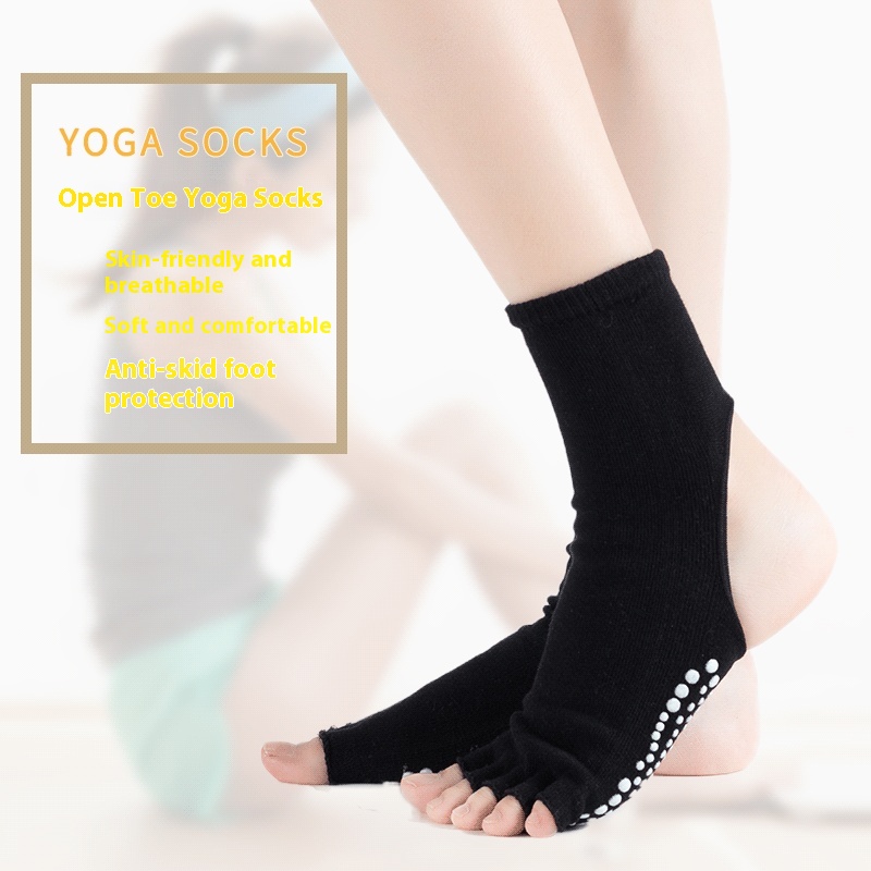 Open-Toe,Open-Heeled Yoga Socks,Non-Slip Glue-Pointed Five-Finger Socks,Women's Yoga Socks
