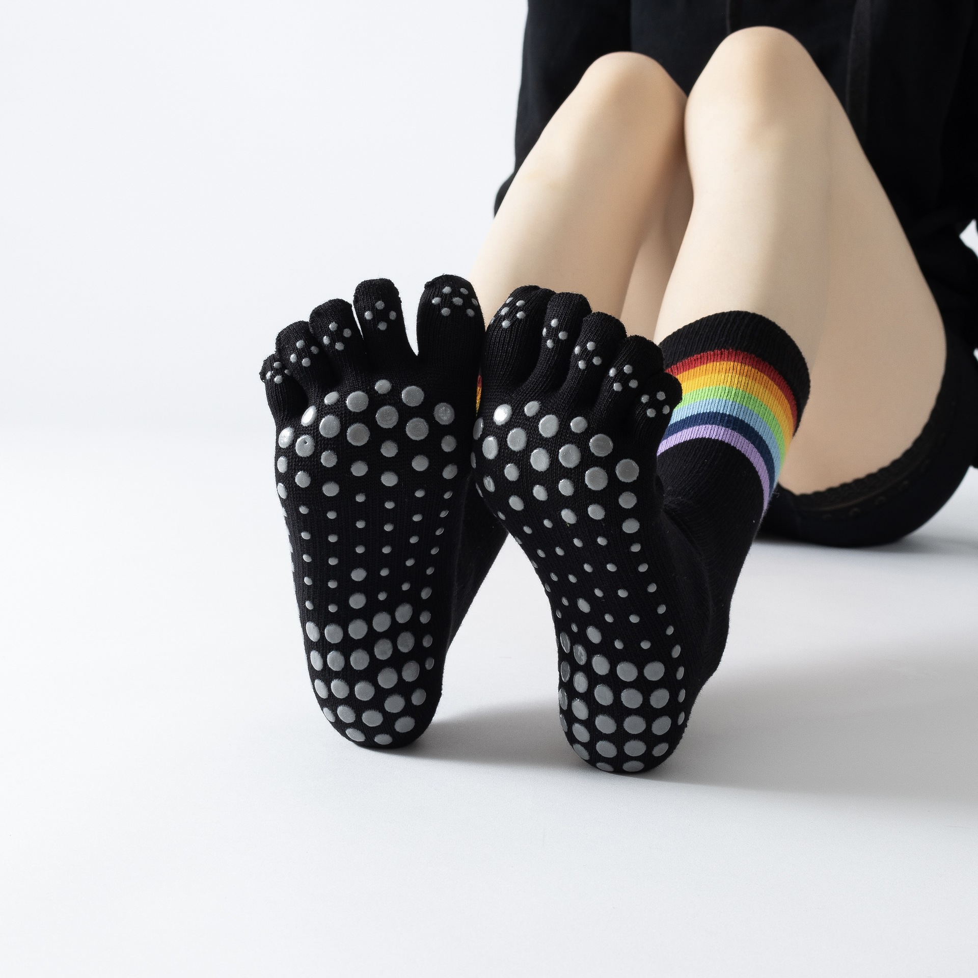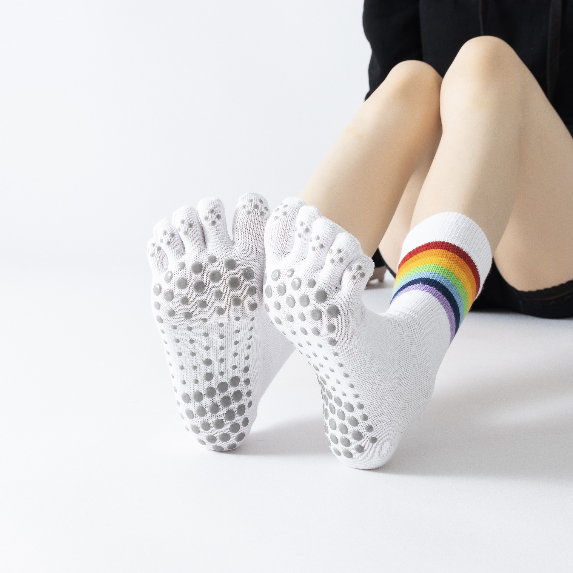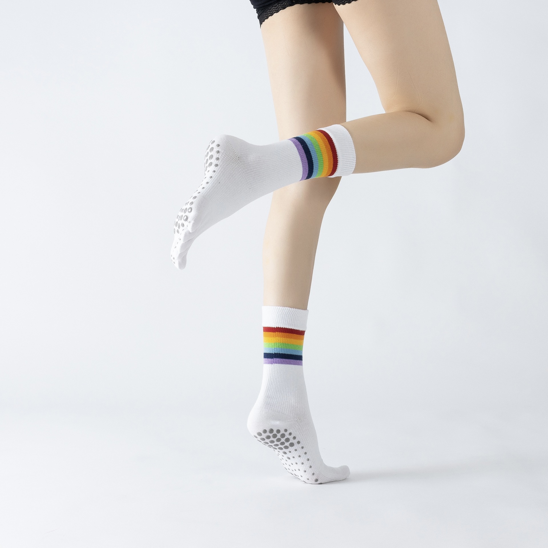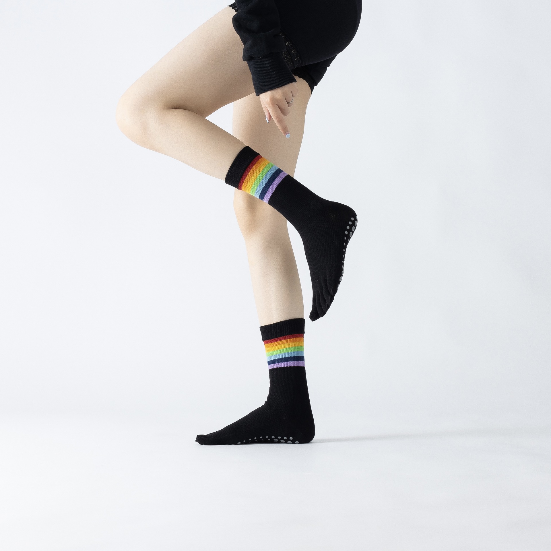Rainbow Color Yoga Calf Socks Retro Versatile Autumn Sports Floor Socks Dropshipping