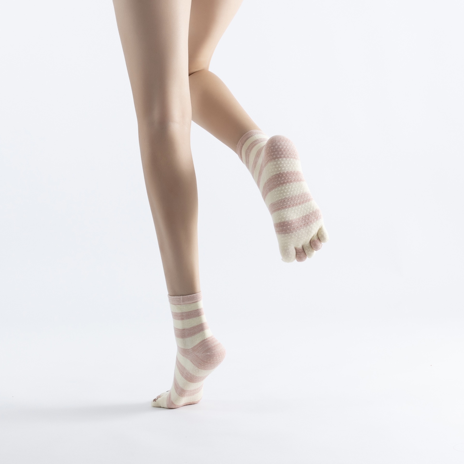 Autumn And Winter Five-finger Cartoon Non-slip Yoga Socks Striped Style Cute Cat Pilates Dance Versatile Calf Socks