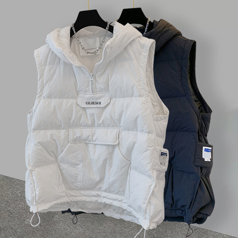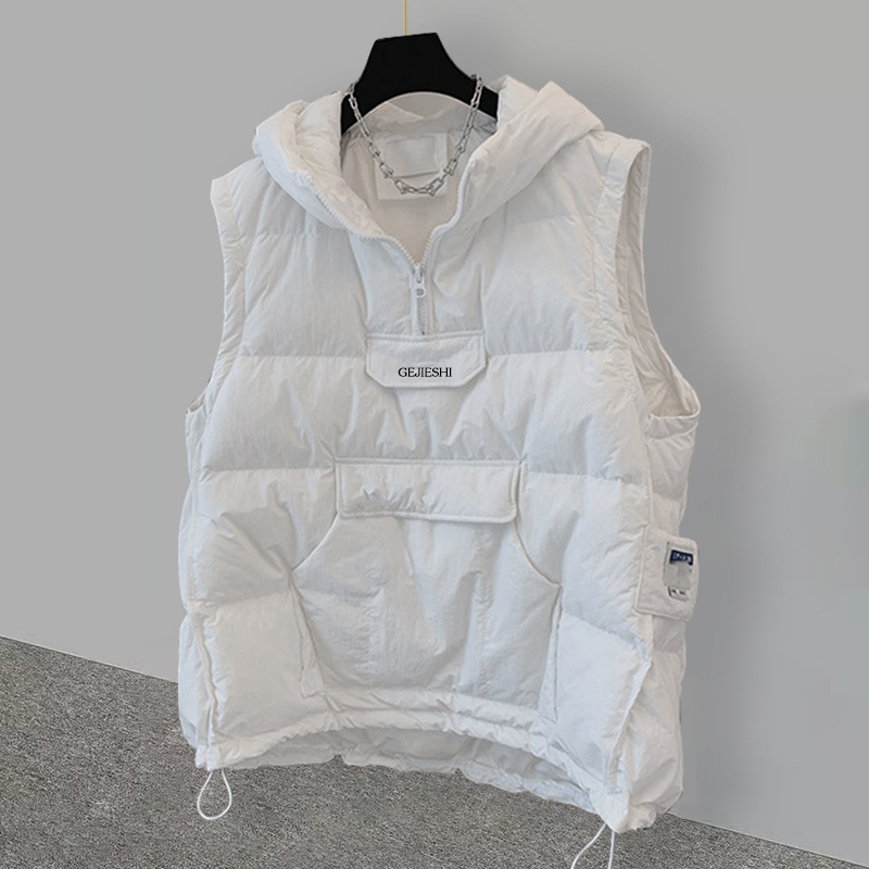 YBrand Hooded Cotton Vest Winter Thickened Velvety Outer Wear Handsome Workwear Embroidered Loose Cotton Jacket