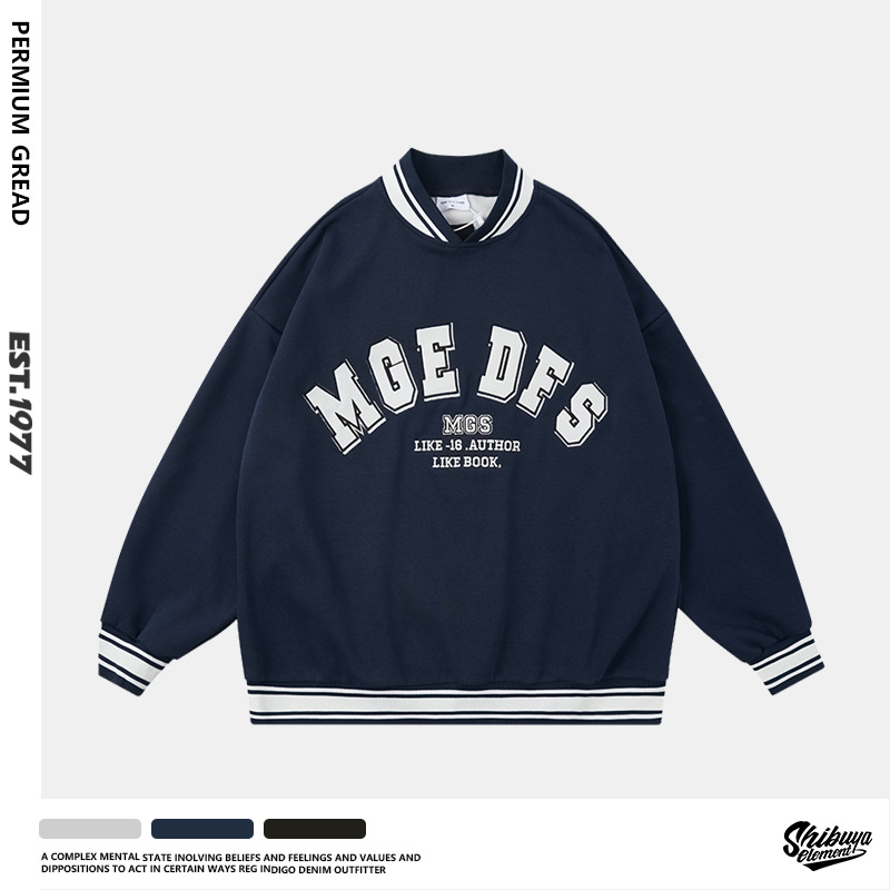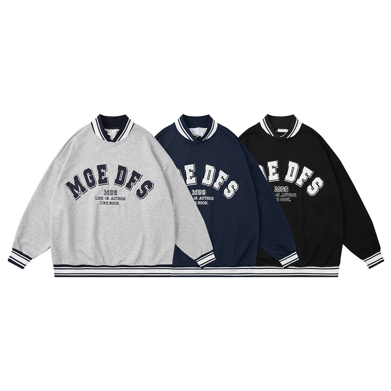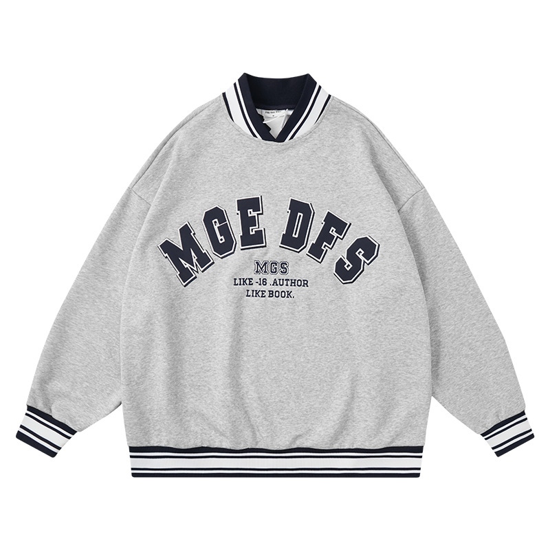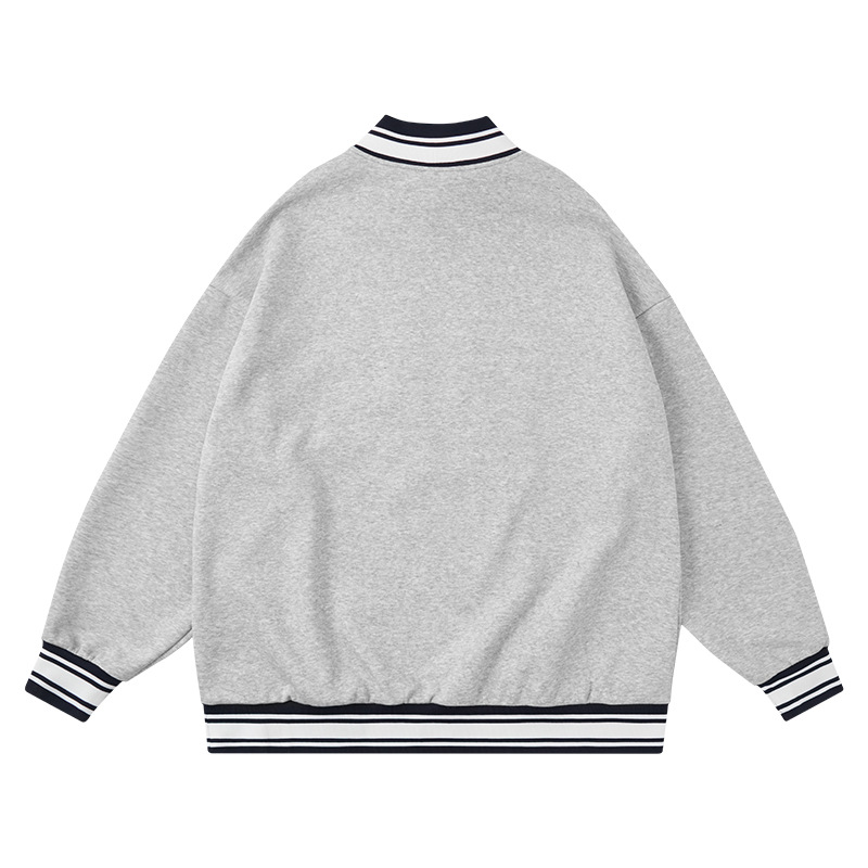American College Style Letter Print Street Sweatshirt Autumn And Winter V-neck Plus Velvet Oversize Couple Sweatshirt Jacket