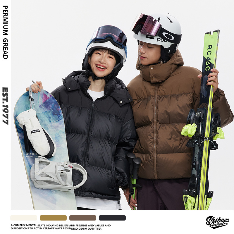 90 White Duck Down American Retro Color Matching Waterproof Hooded Down Jackety Men's Maillard Couple Thickened Bread Jacket