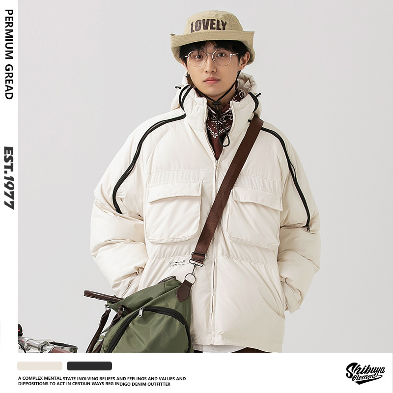 Winter Street Fashion Brand Big Pocket Hooded Couple's Cotton Coat Loose Japanese College Style Thickened Casual Cotton Coat