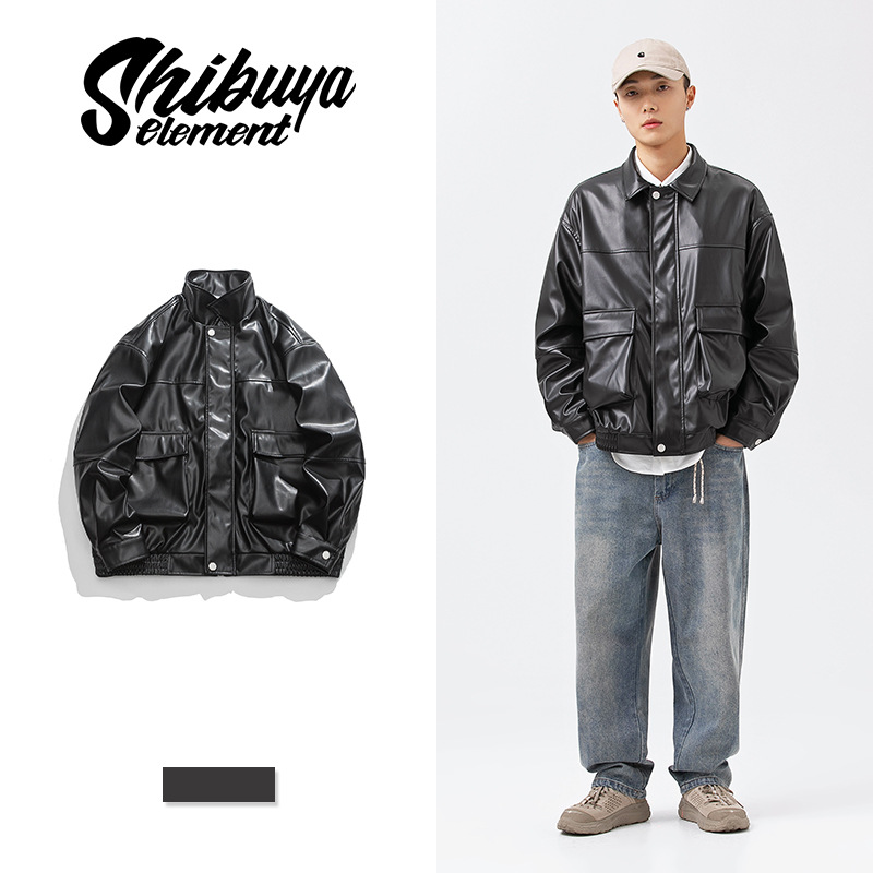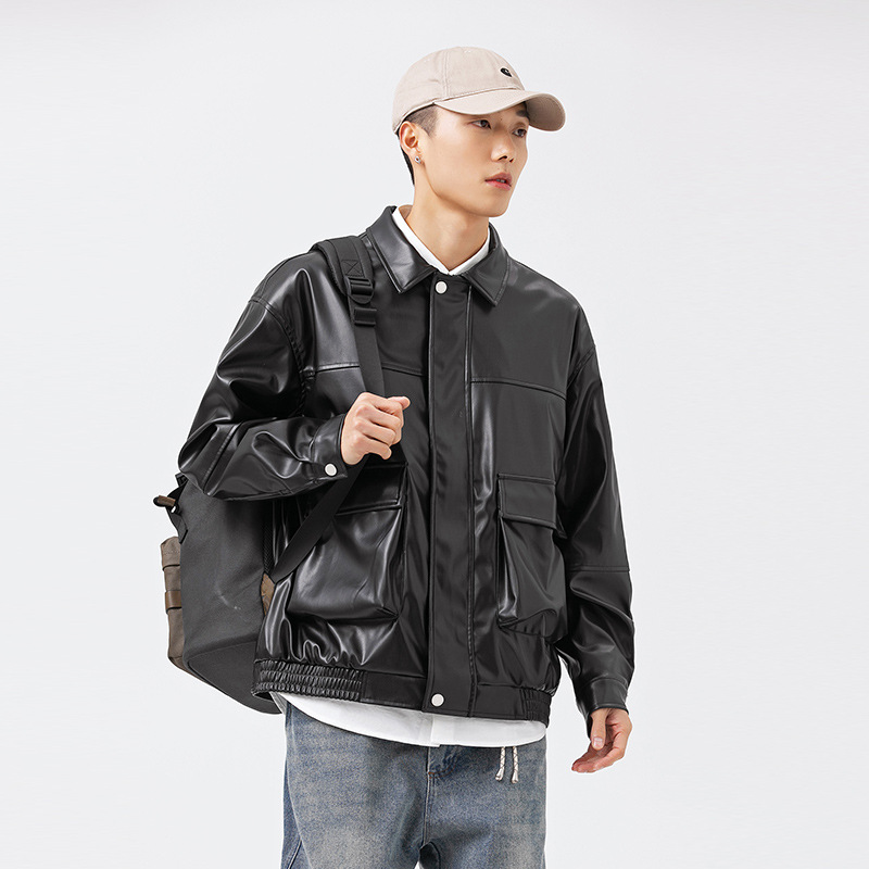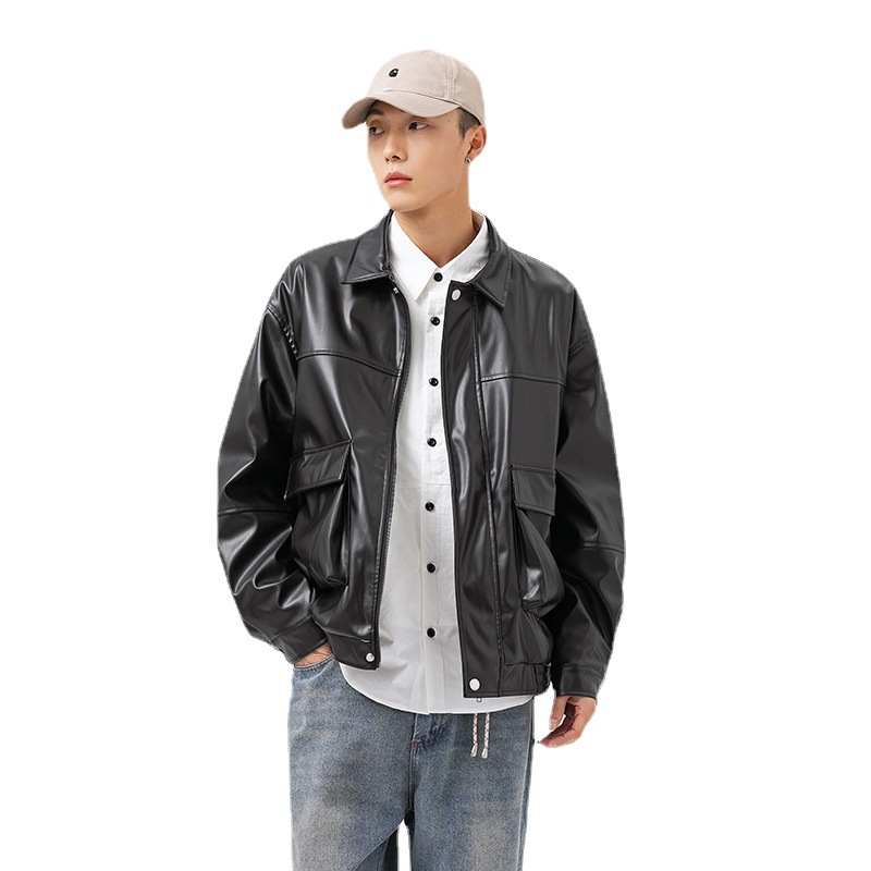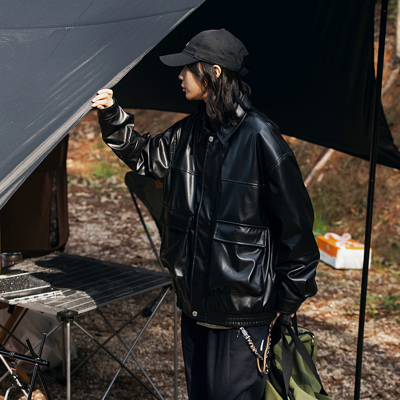 Spring Americany Brand Work Jacket Men's Loose Pu Leather Jacket Street Versatile Stand-up Collar Casual Couple Jacket