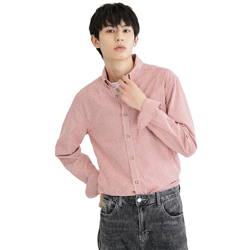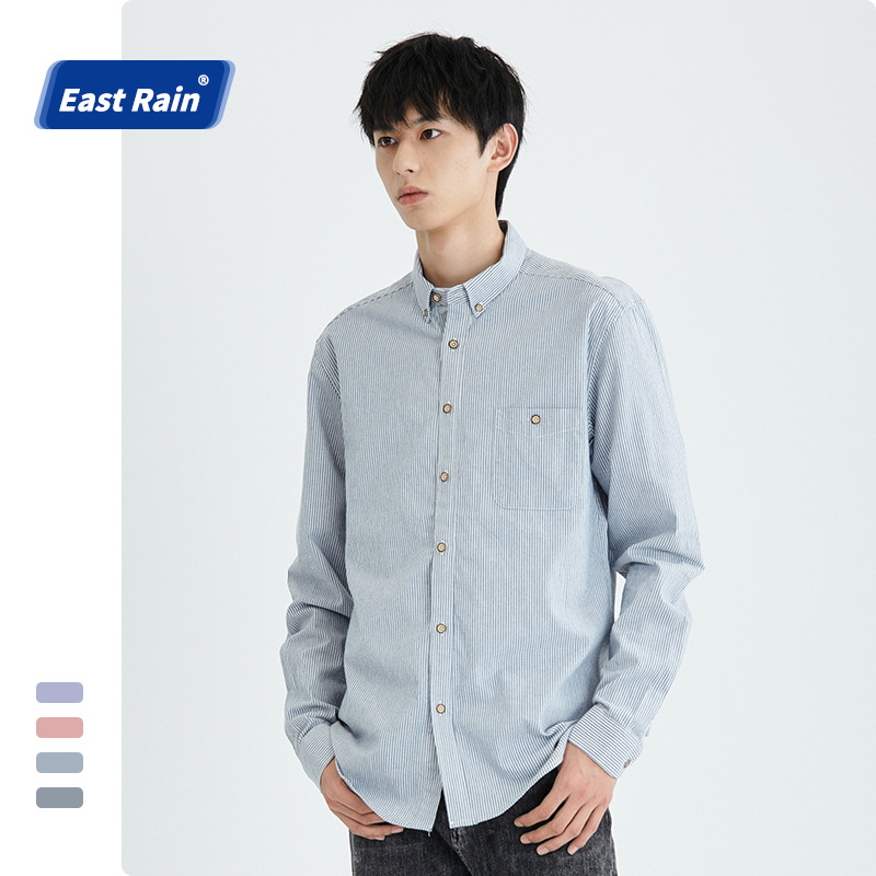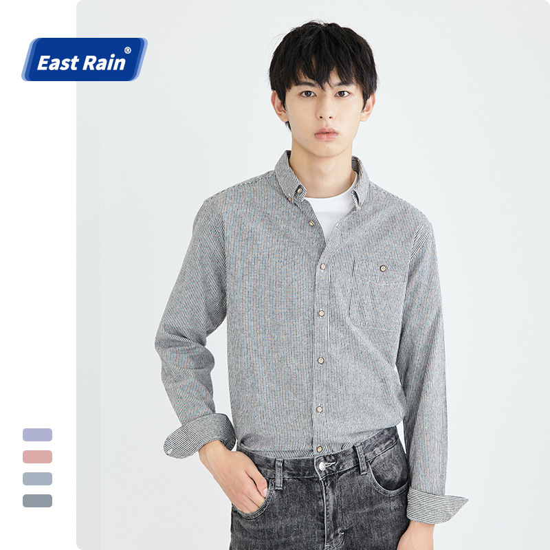 ERMen's Long Sleeve Men's Shirt Striped Casual Men's Shirt Japanese Square Collar Casual Shirt Men's Jacket
