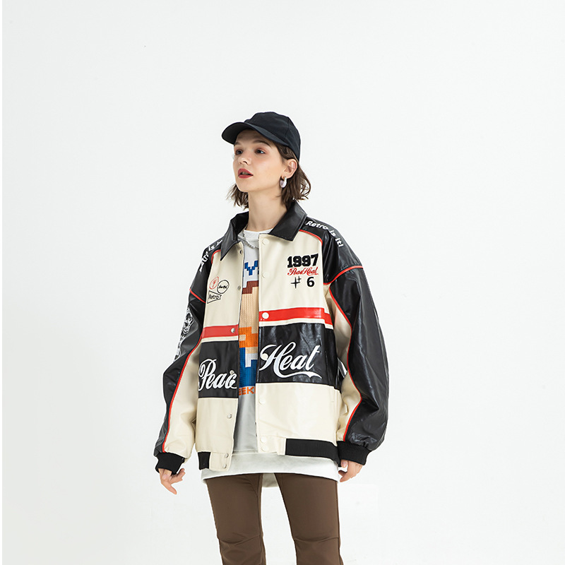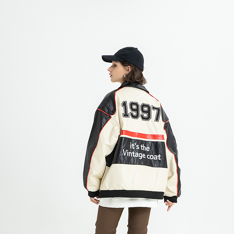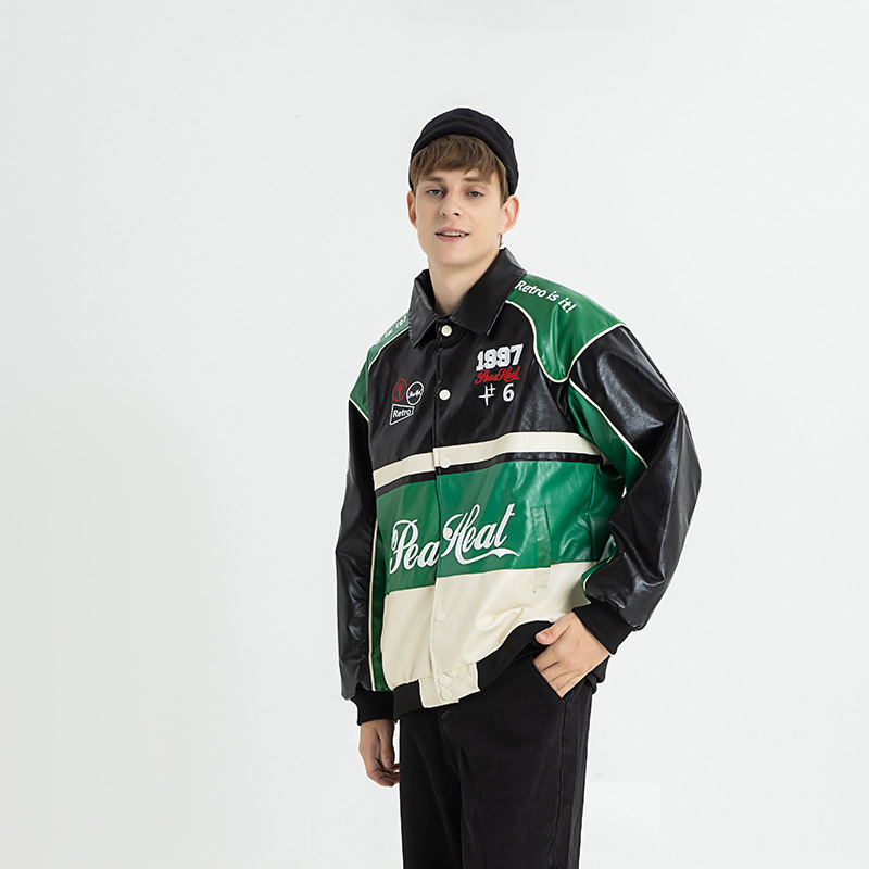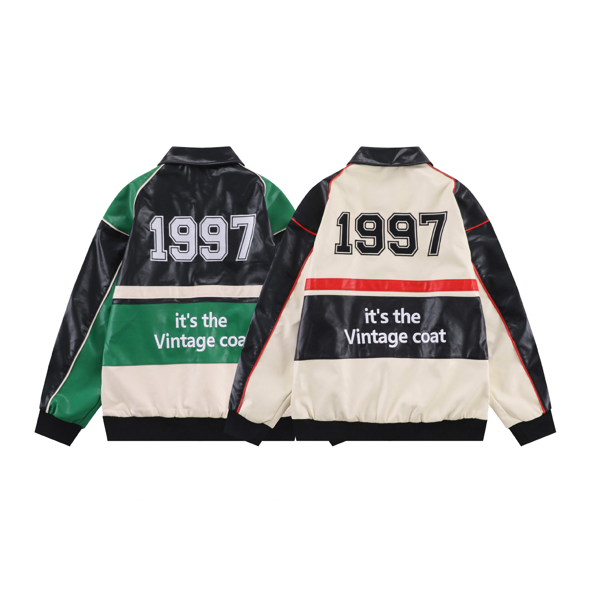 TIDEEKUMotorcycle Jacket Men's Jacket Men's Spliced American Men's Autumn Men's Retro Baseball Uniform Loose