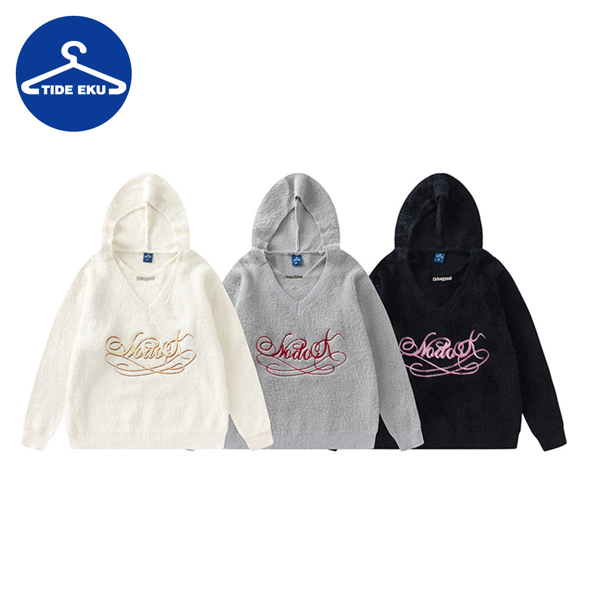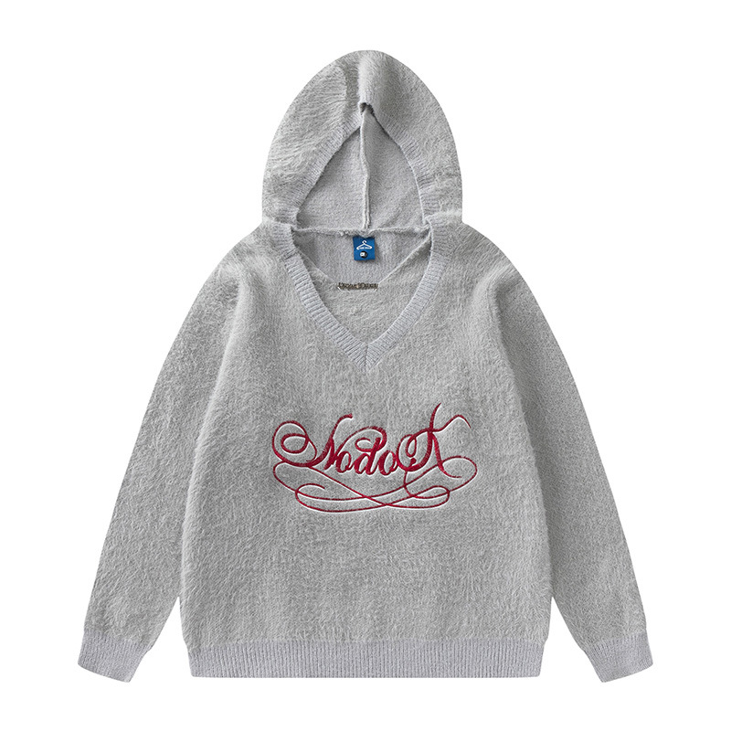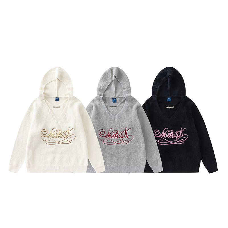TIDEEKUy Brand Sweater Japanese Autumn And Winter Couple Loose V-neck Knitted Top Men's Solid Color Letter Knitted Sweater Women