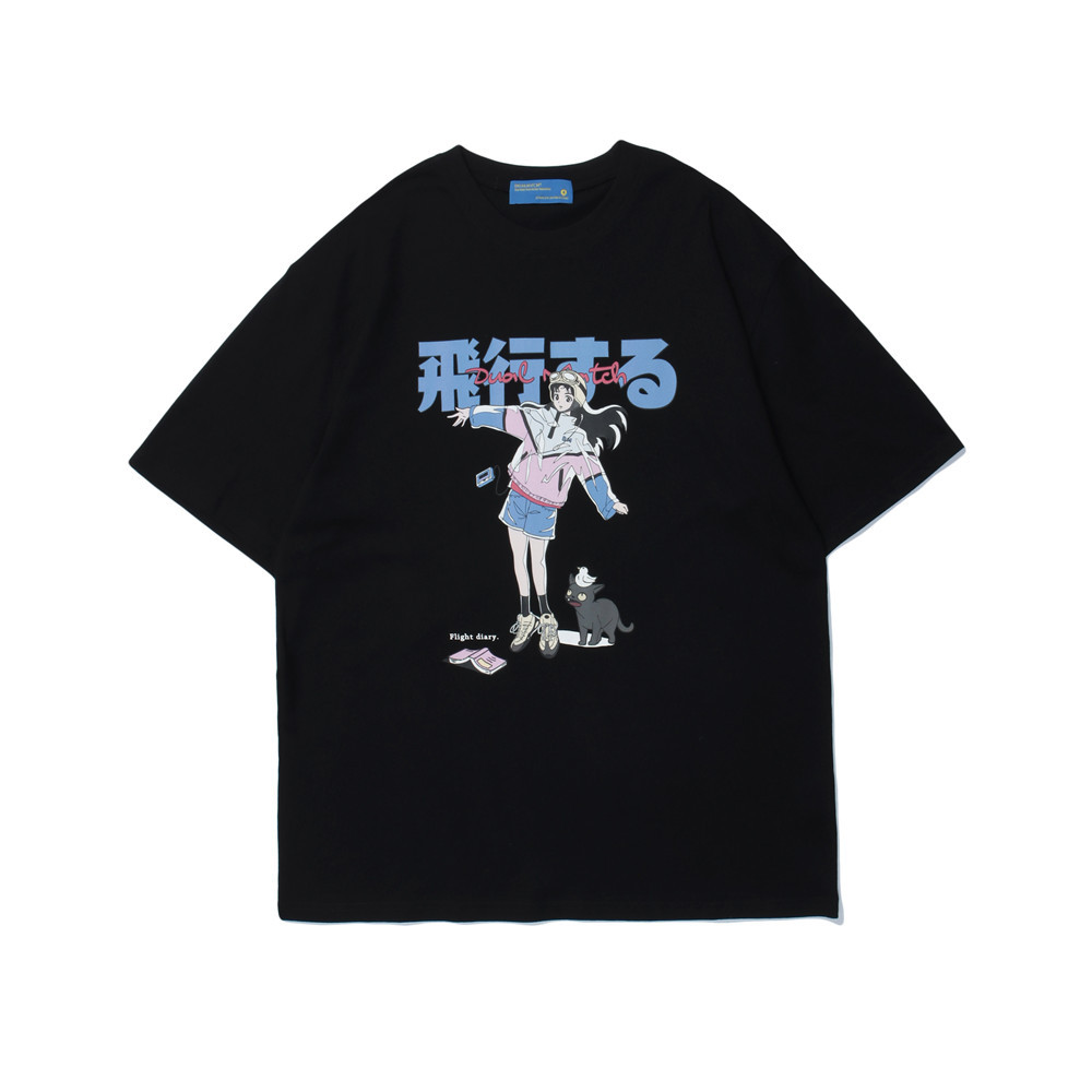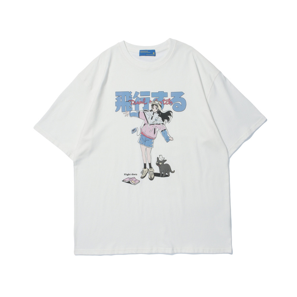 Two-dimensional Animation Printed Short-sleeved T-shirt For Men Street Fashion Brand Loose Five-quarter Sleeve Summer T-shirt