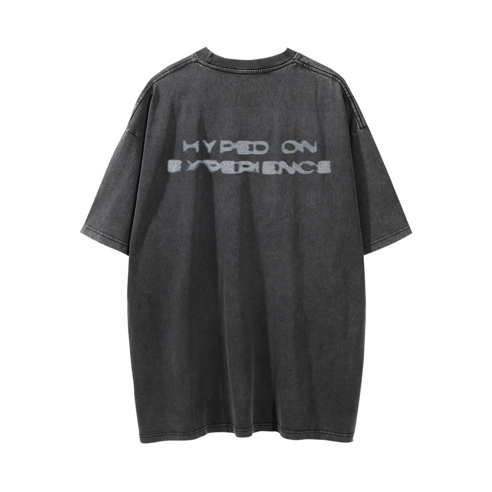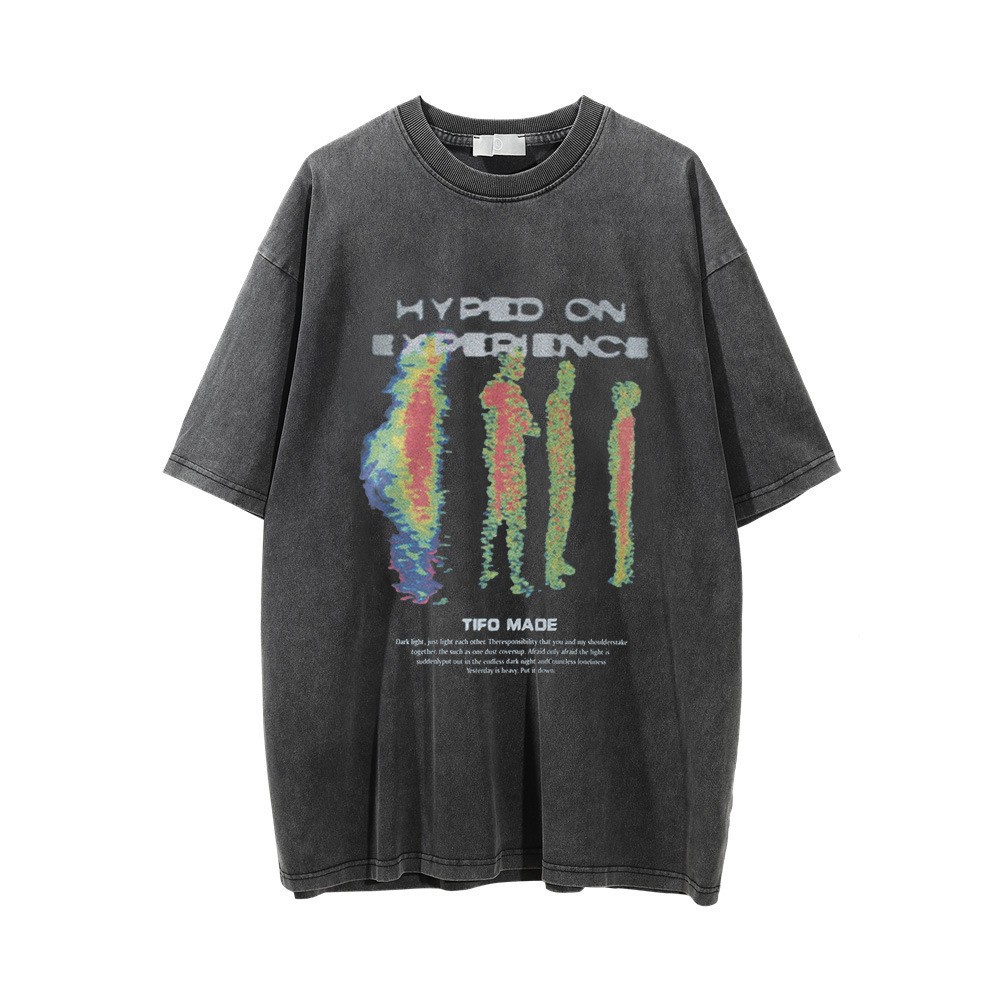 Thermal Imaging Human Figure Abstract Print Short-sleeved T-shirt For Men Street Summer Washed Distressed Round Neck Casual T-shirt