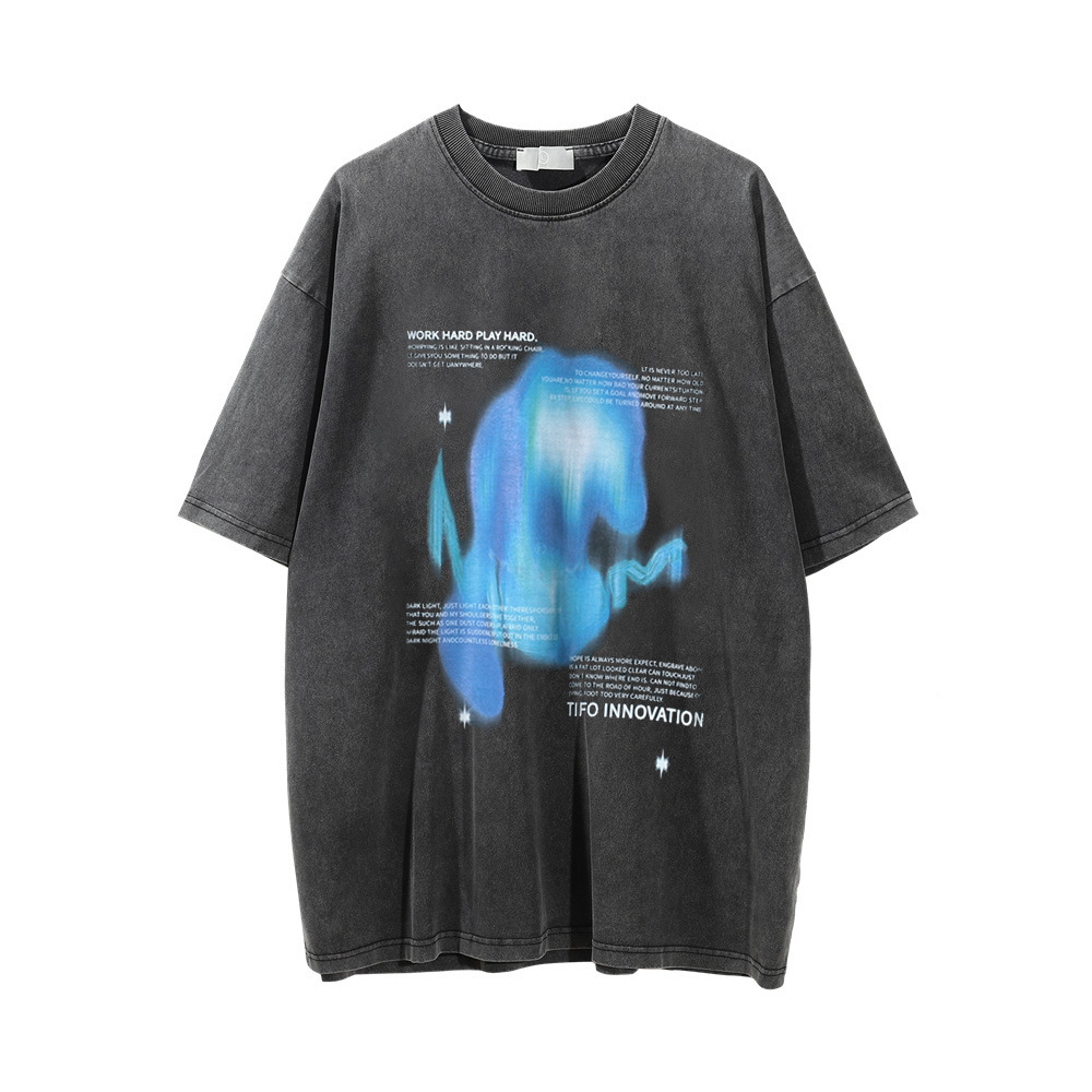 American Street Fashion Thermal Imaging Printed Short-sleeved T-shirt For Men In Summer Washed Distressed Loose Short-sleeved Top T-shirt