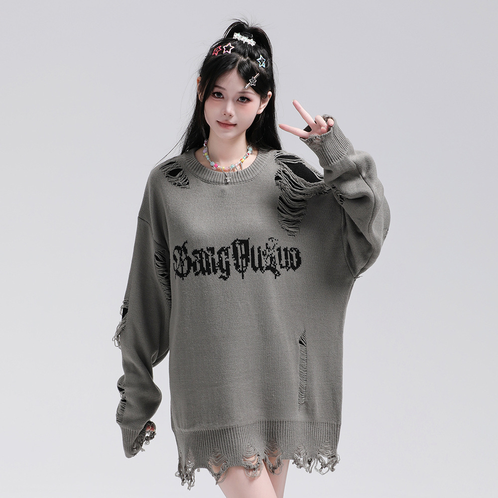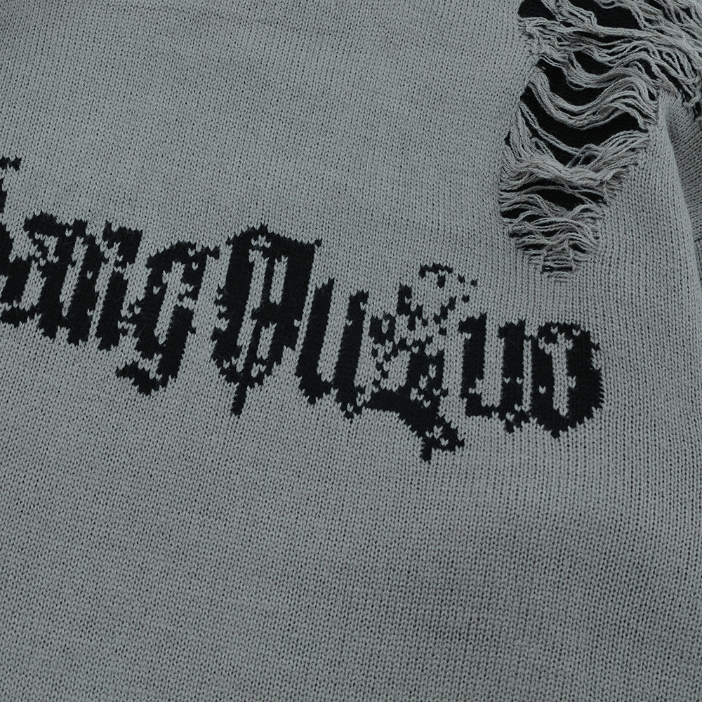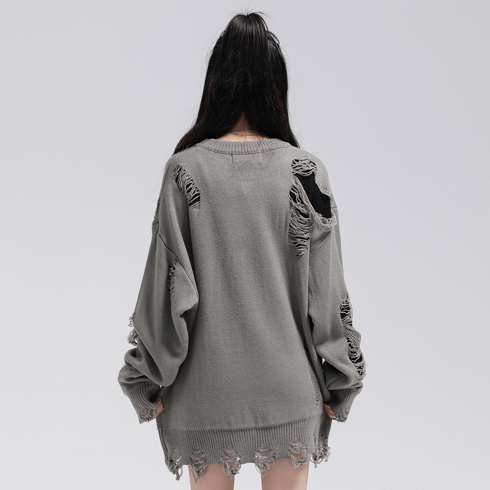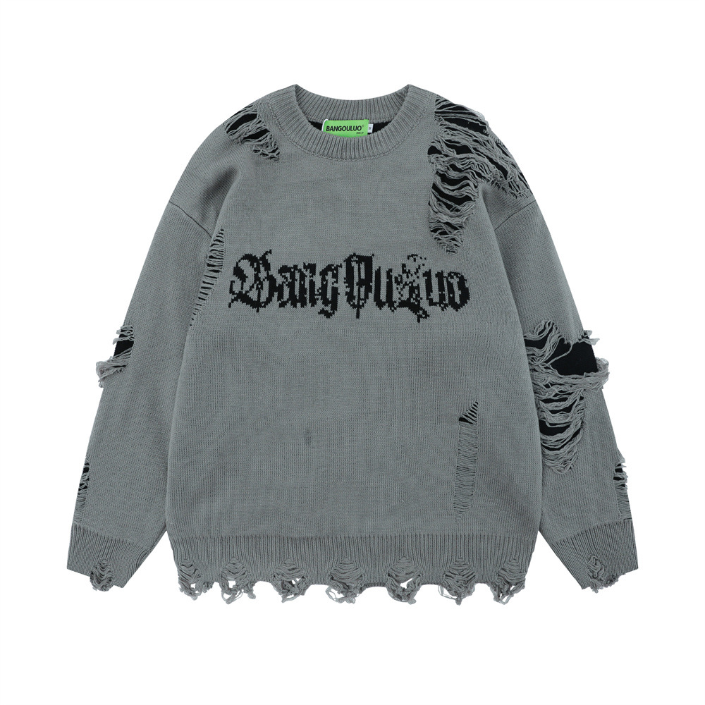 Heavy Industry Ripped Round Neck Sweater Autumn And Winter Casual Double-sided Wearable Loose Lazy Pullover Men's Sweater American