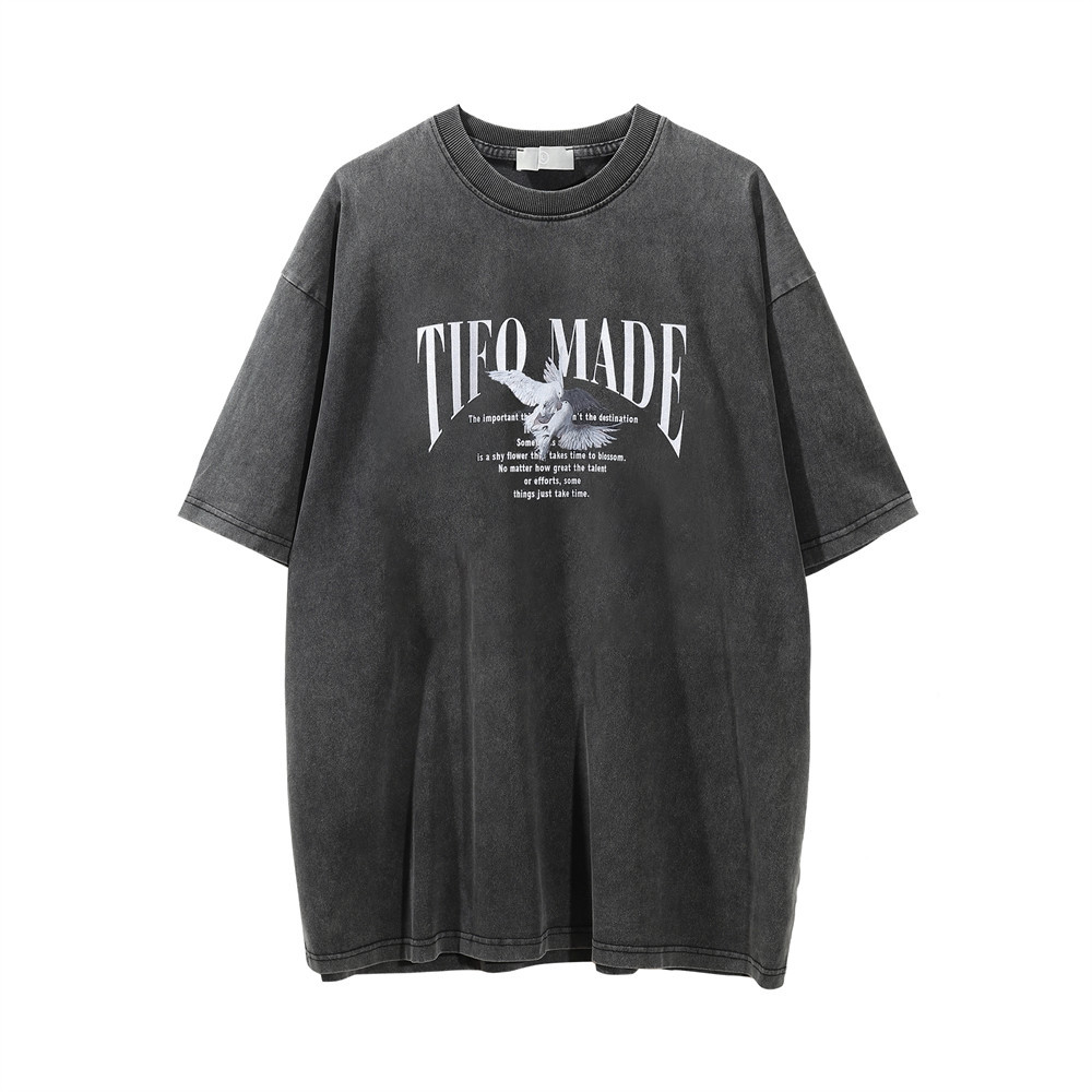 Peace Dove Flower Print Short-sleeved T-shirt Men's High Street Casual Three-quarter Sleeve T-shirt Top Spring And Summer