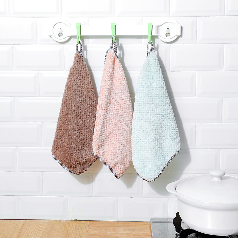 Plain Coral Velvet Double-sided Absorbent Rag Thickened Lint-free Dish Towel Kitchen Dish Cloth Scouring Pad
