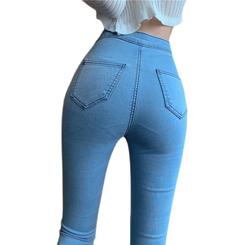 High-waisted Skinny Jeans For Women,Slim Fit,Stretchy Light Blue Korean Style Straight Peach Butt Pencil Long Pants