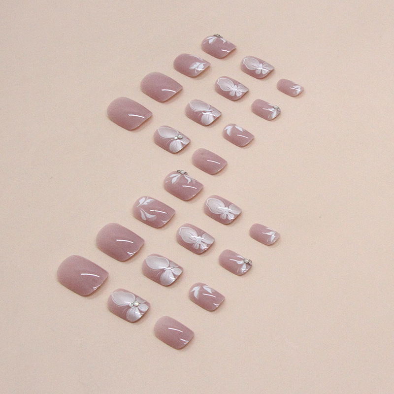 Short Sweet Aurora Fairy Butterfly Nail Art White Pure Desire Girl Diamond Style Wearable Nails Finished False Nails